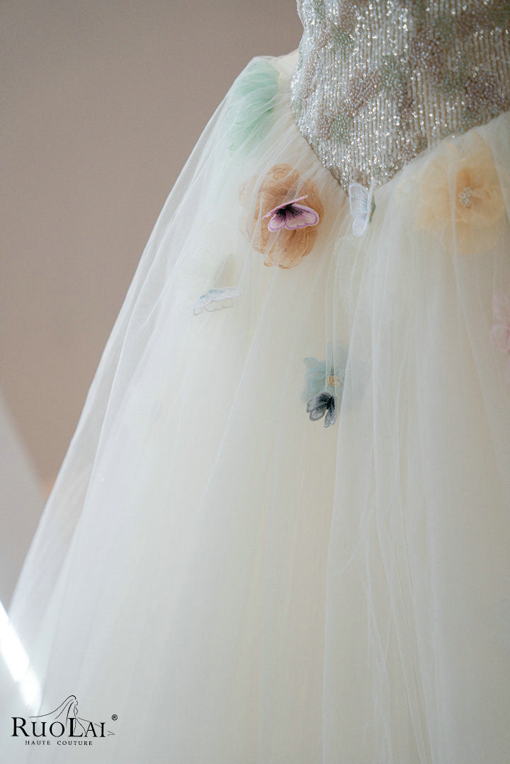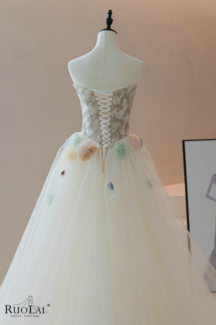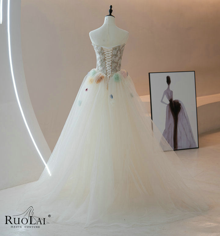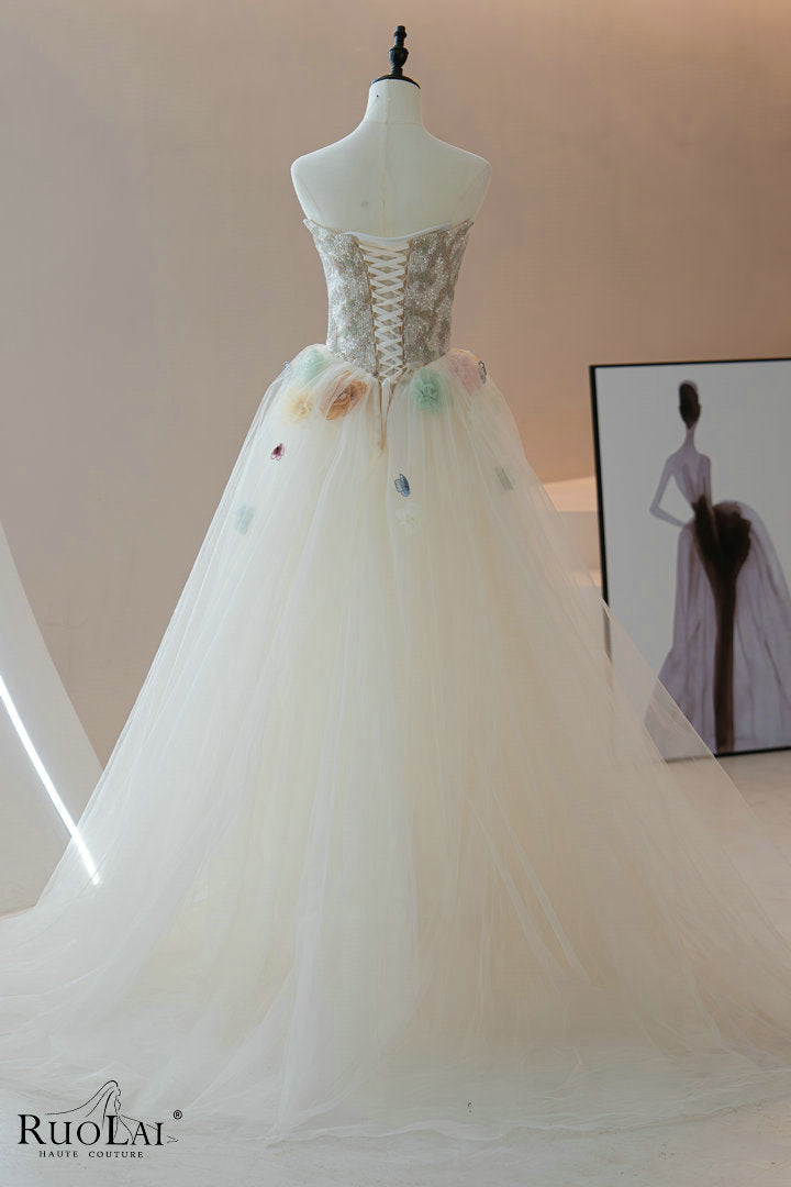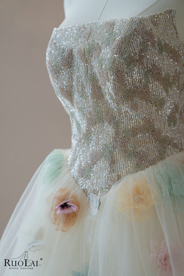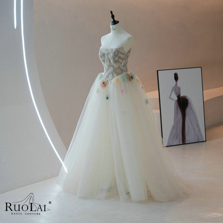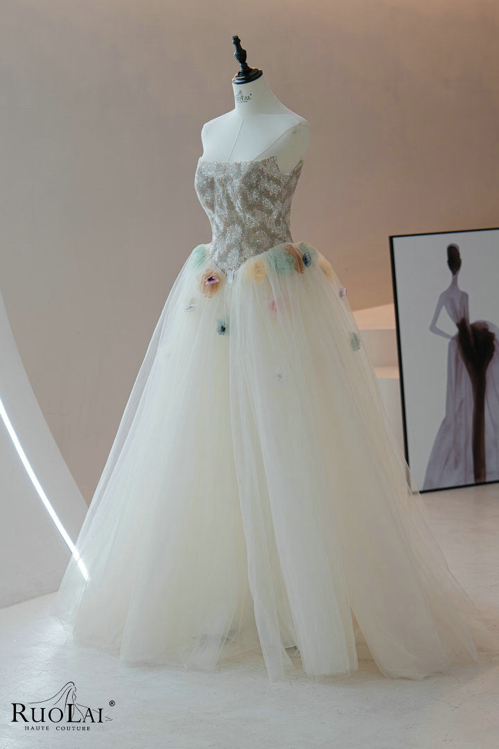 LWC6938 Elegant Strapless Colorful 3D Flowers Evening Dress