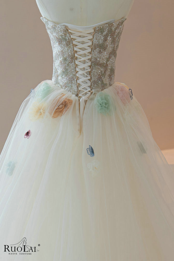 Strapless Sleeveless Lace up Back Basque Waist Colorful 3D Flowers Women Party Luxury Sequined Evening Dress