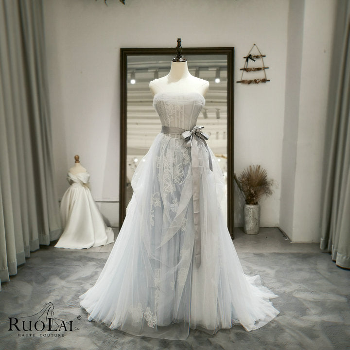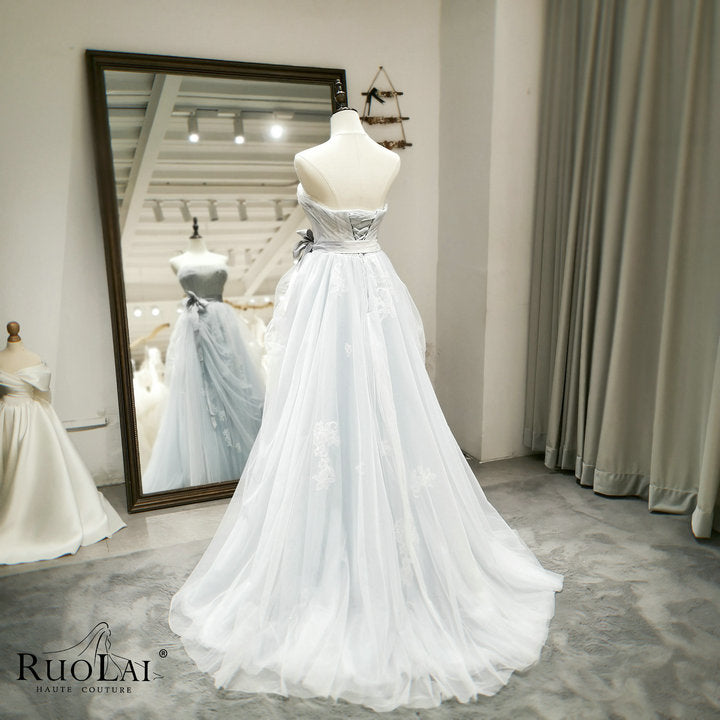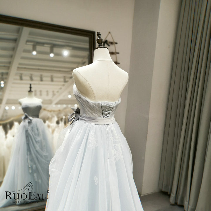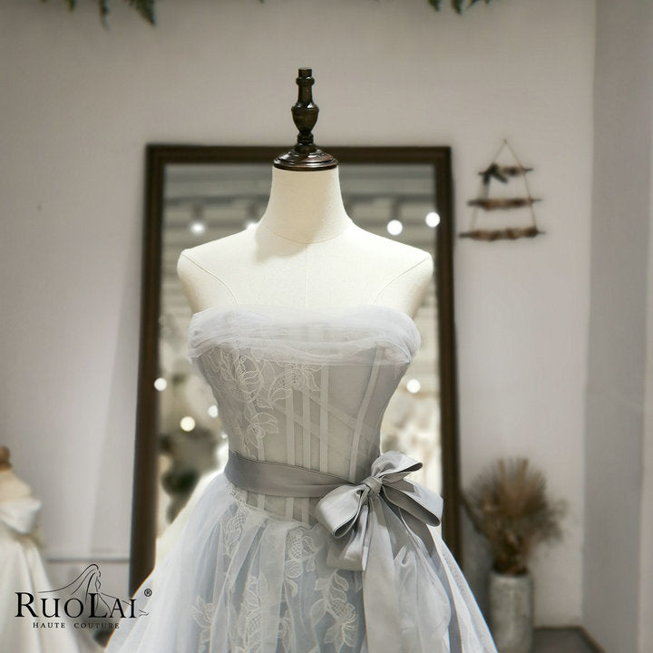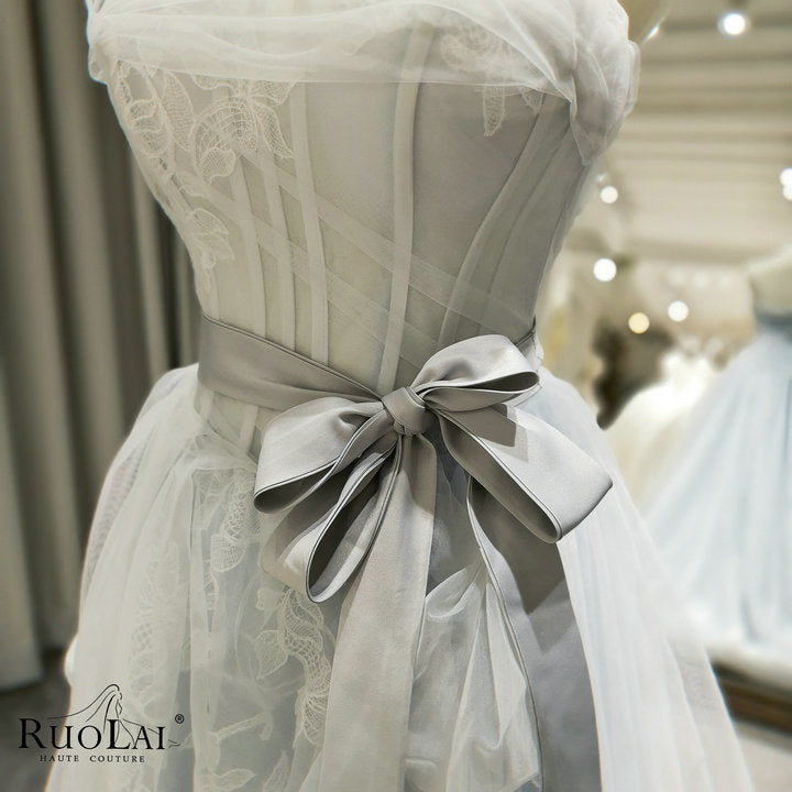 Elegant Strapless Girl Bow Tulle Evening Dress