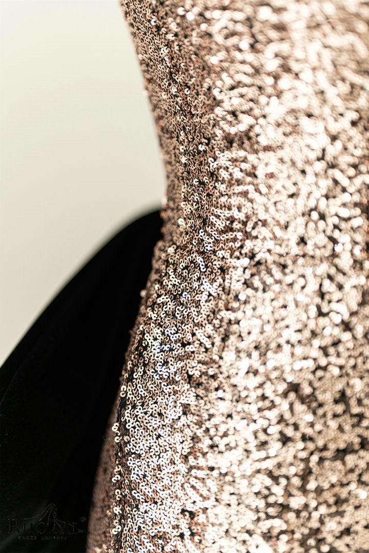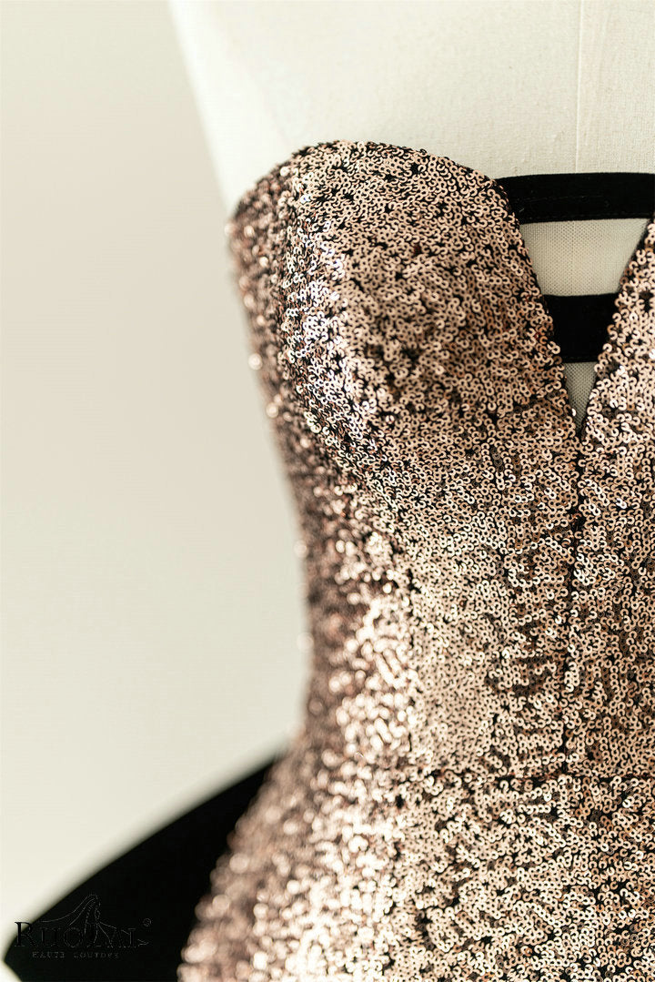 LWC6807 Gold Sweetheart Neck with Black Bow Evening Dress