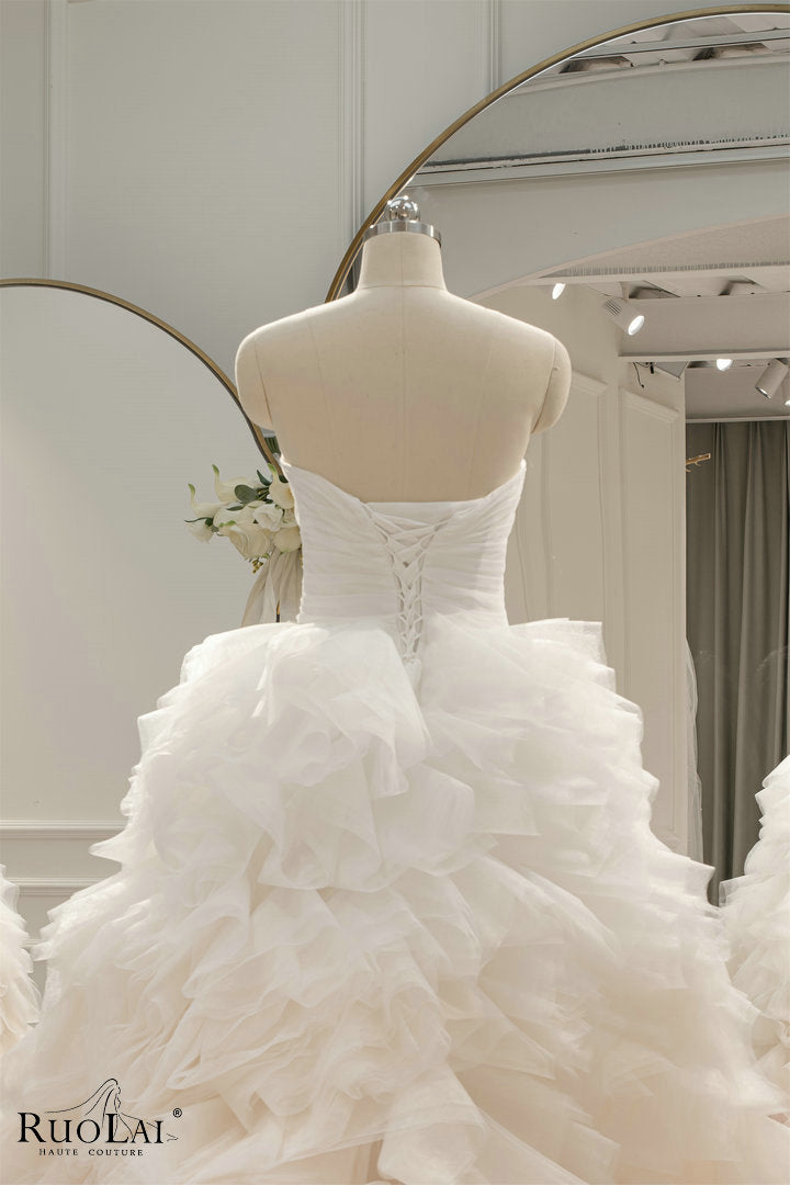 Modern Sweetheart Neckline Pleat Party Dresses A-line Ruffles Puffy Elegant Sleeveless Lace-up Back Evening Dress