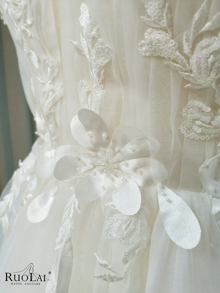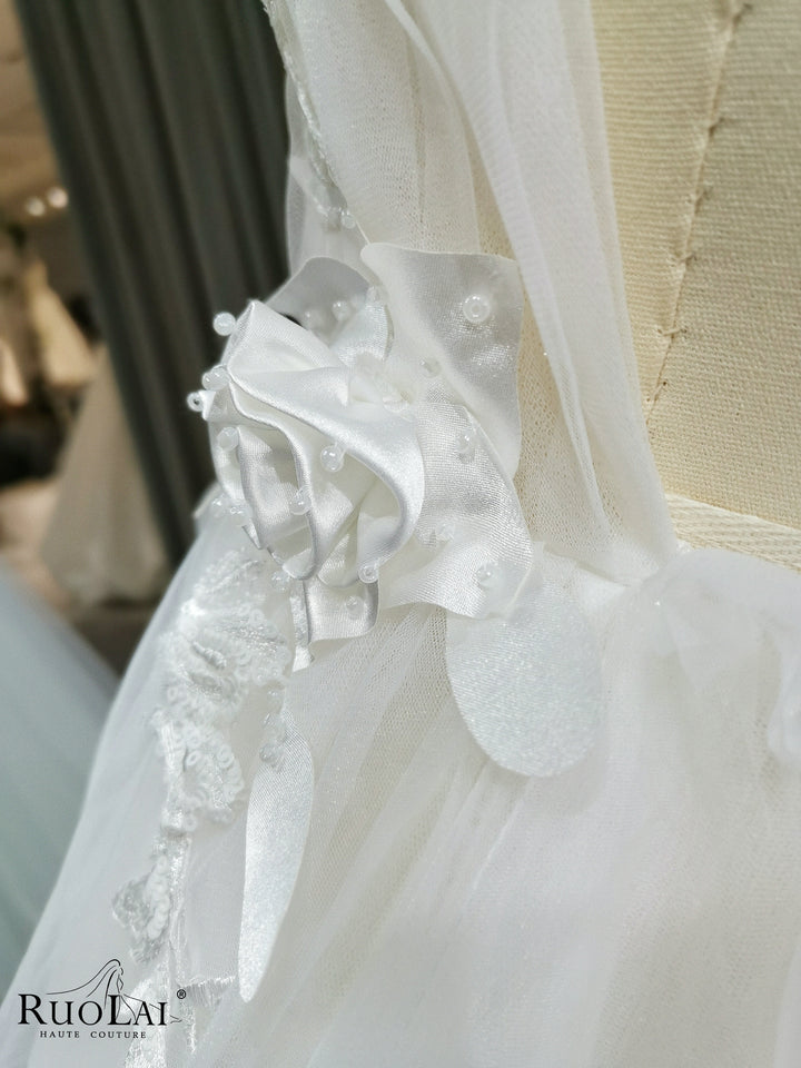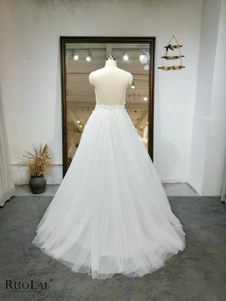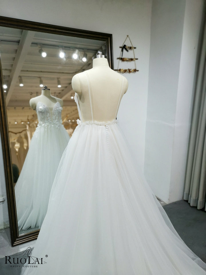 A Line Wedding Dress Flower Spaghetti Strap Beading Bride Elegant Dress Backless Bridal Gown V Neck Vestido De Novia Robe Marriage