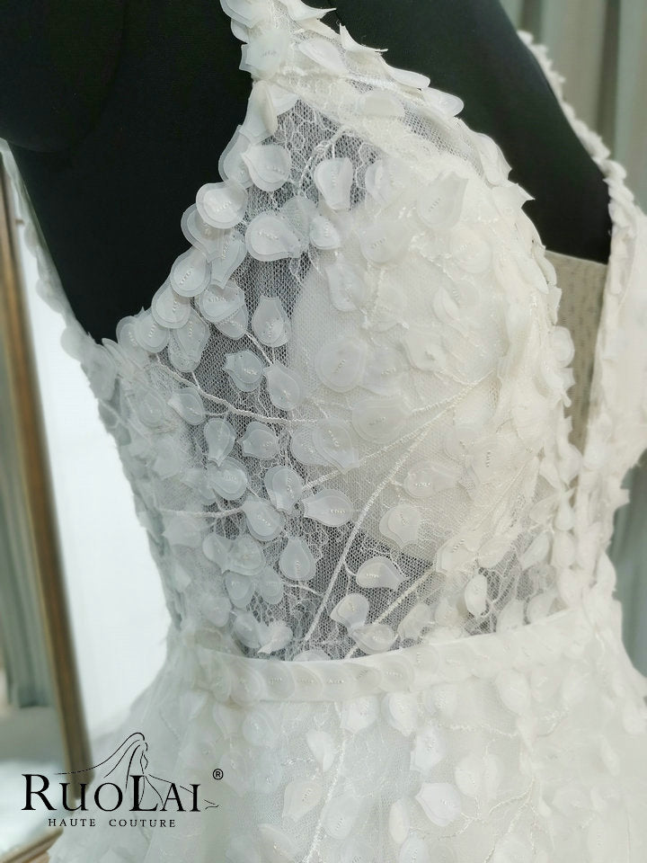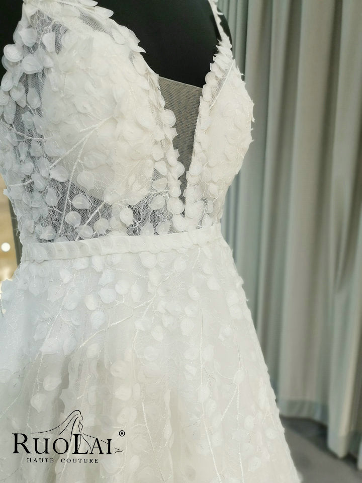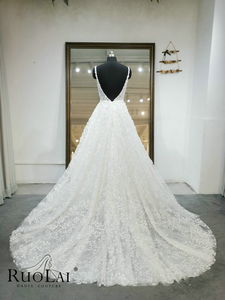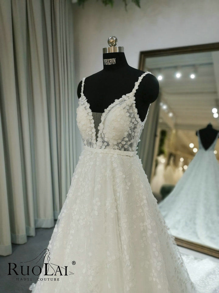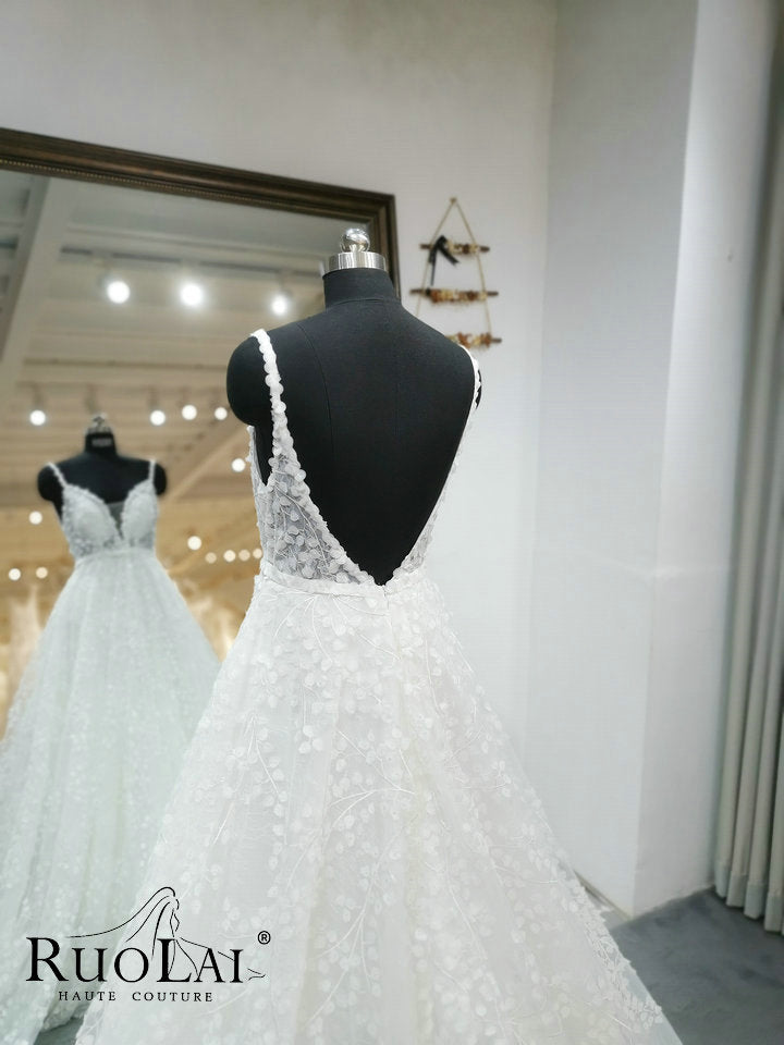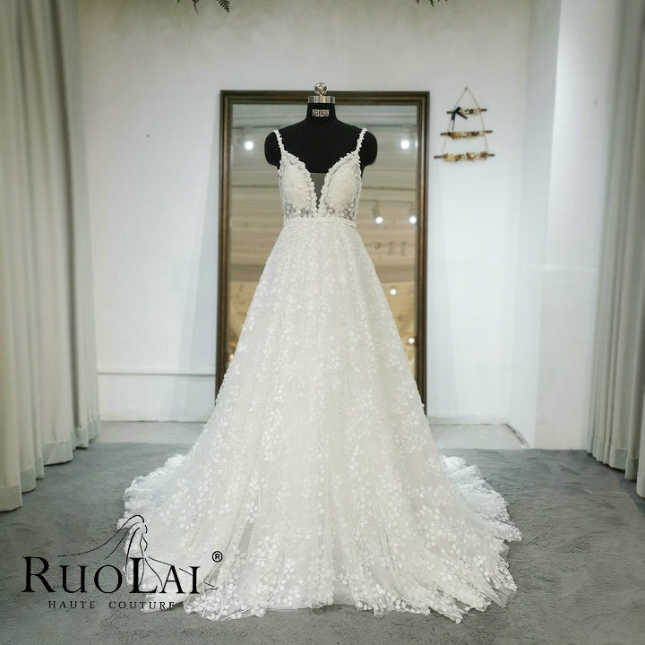 Elegant Spaghetti Strap Deep V Neck Sleeveless Wedding Dresses A-Line Elegant Laced Sexy Boho Backless Bridal Gowns for Women