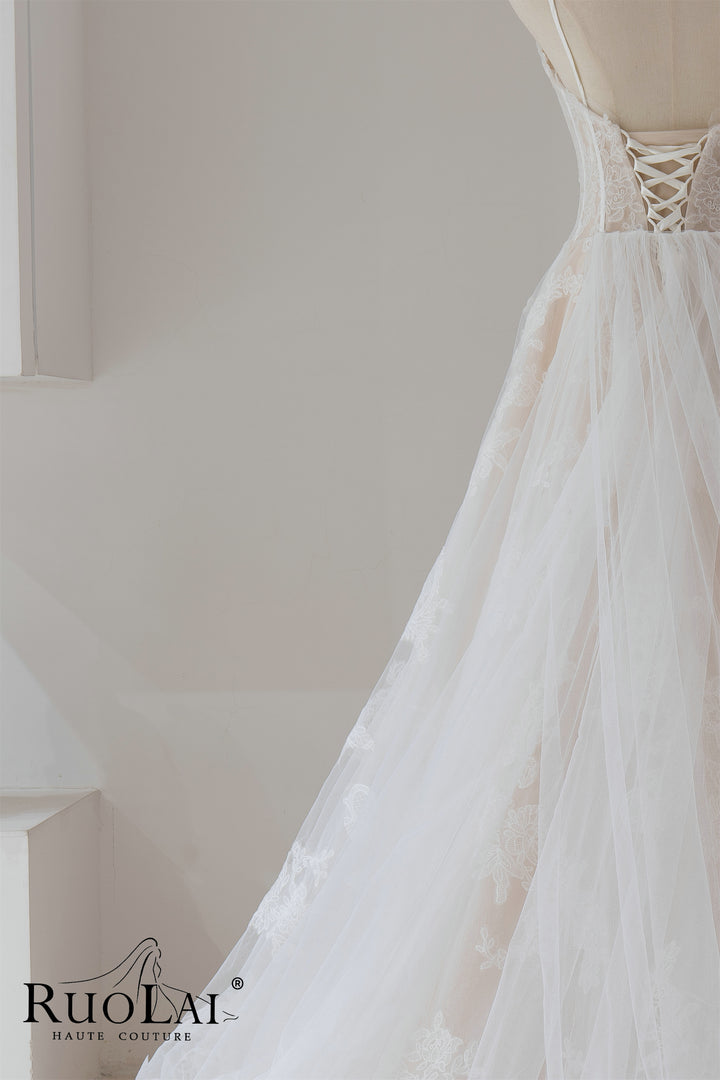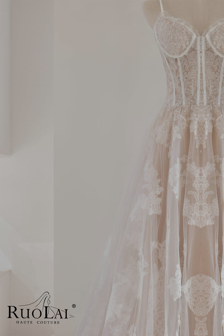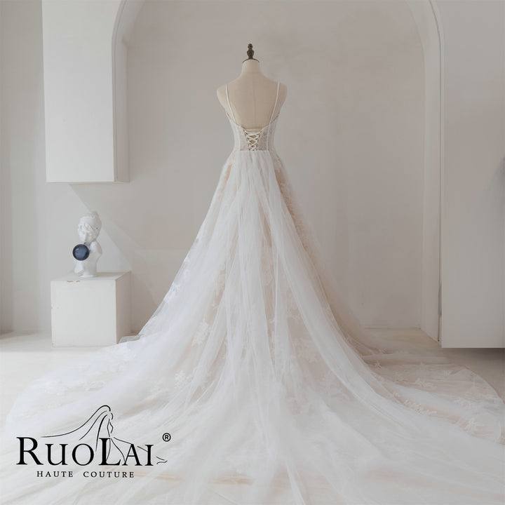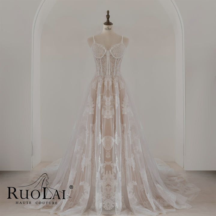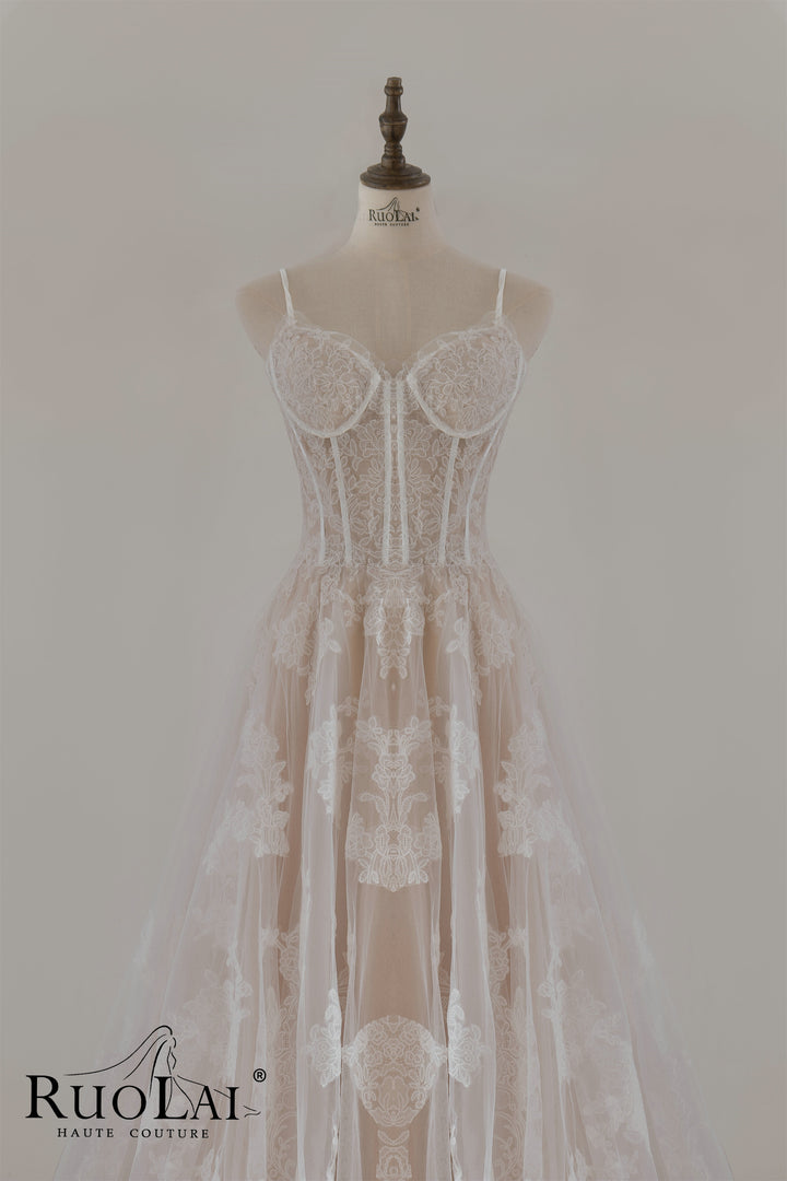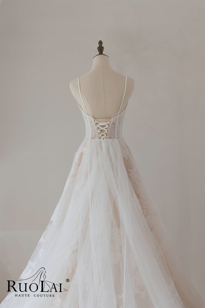 Classic Lace Spaghetti Strap Wedding Dresses Half Back Bridal Gowns