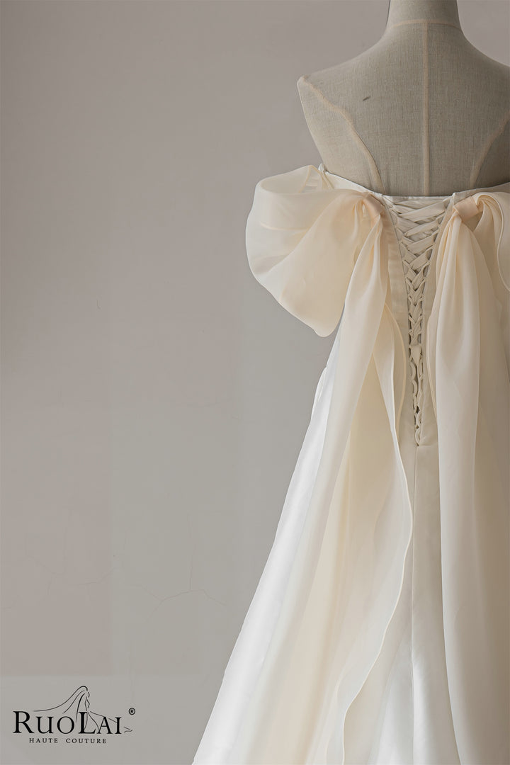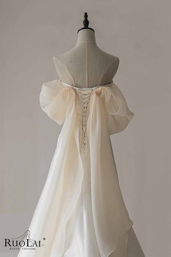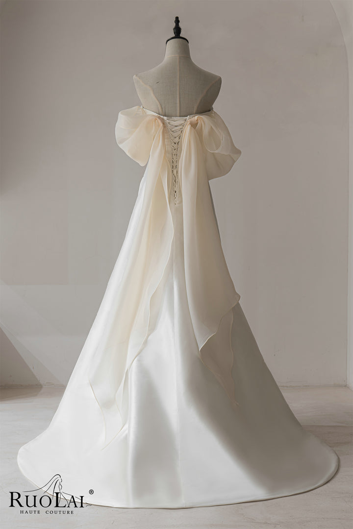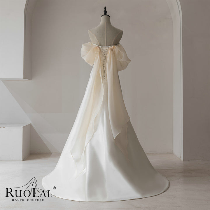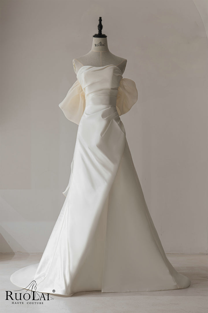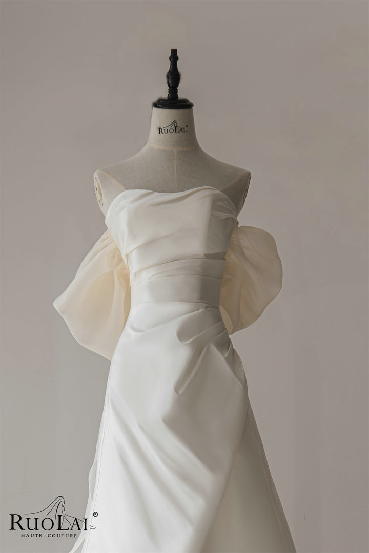 Classic Satin Ruched Sleeveless Bridal Wedding Gowns Dresses Strapless Pleat Design Off The Shoulder Bridal Gown