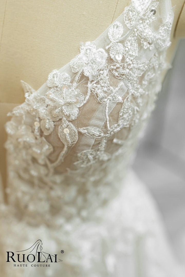 Classic Spaghetti Straps Sleeveless Appliqus Lace Wedding Dresses
