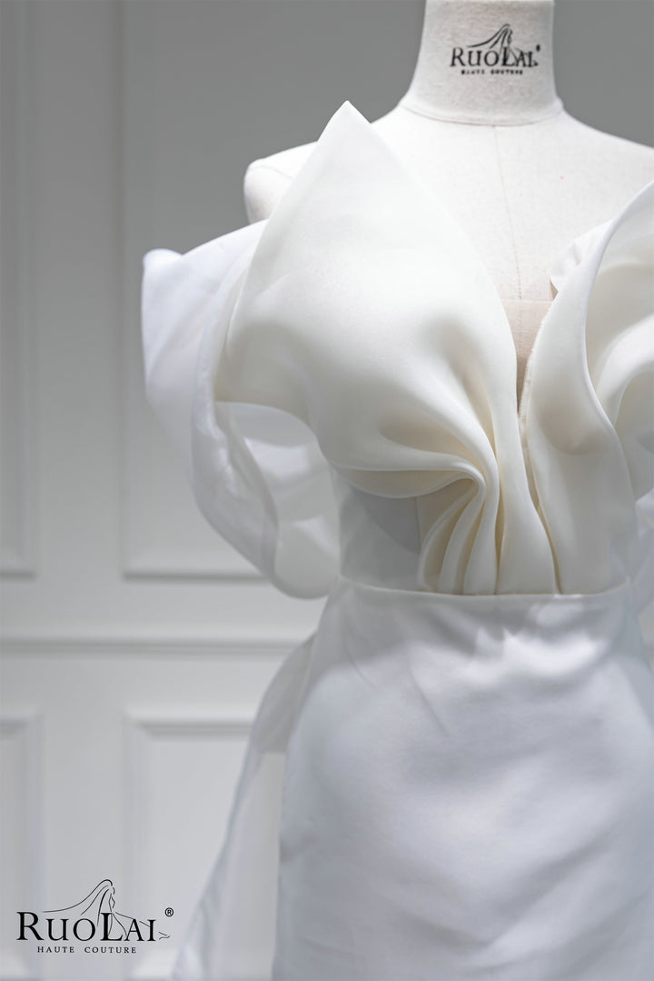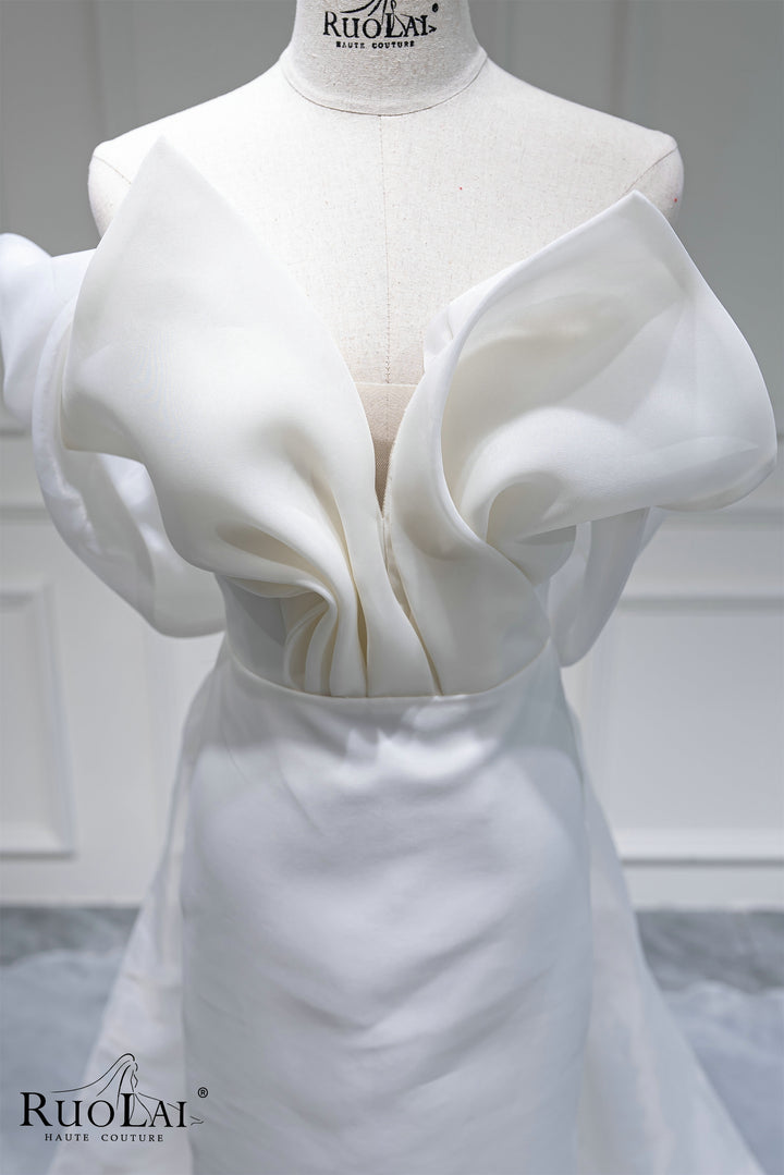 Classic Strapless Draped Satin Mermaid Wedding Gown for Bride