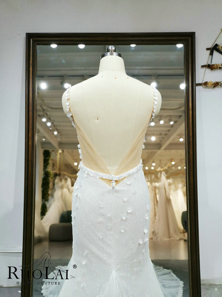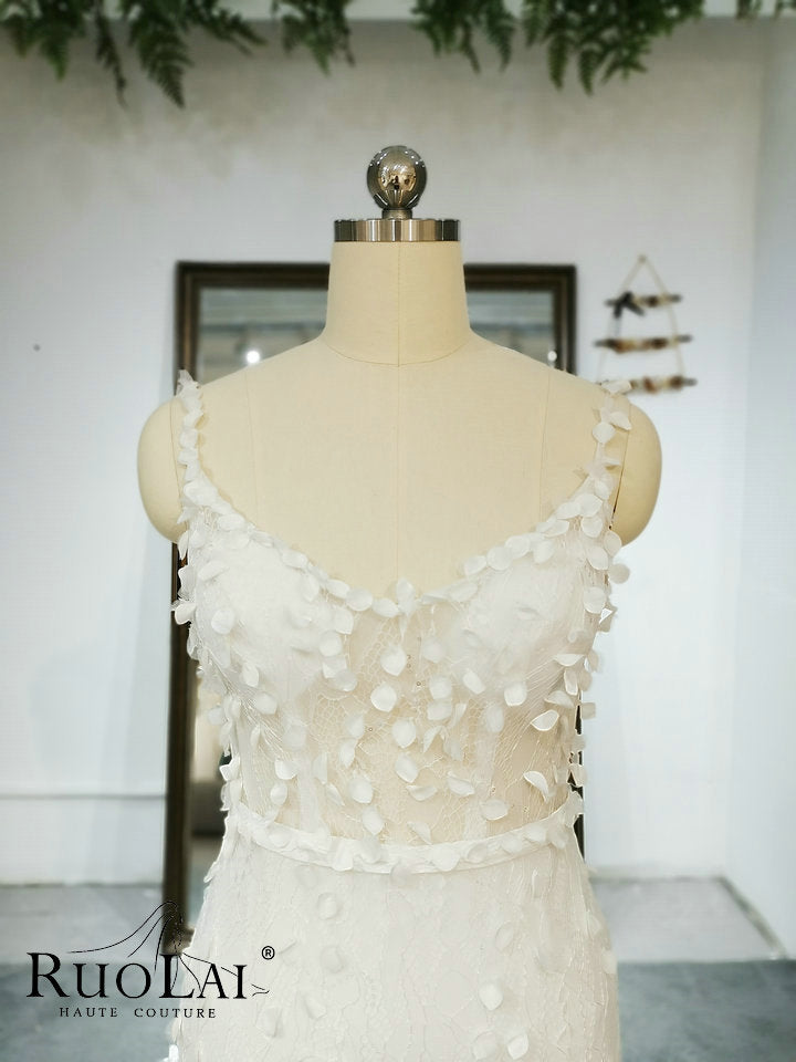 Elegant Spaghetti StrapLace Appliques Sexy Back Wedding Dresses