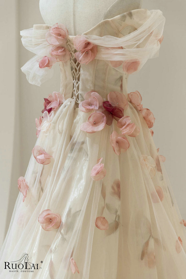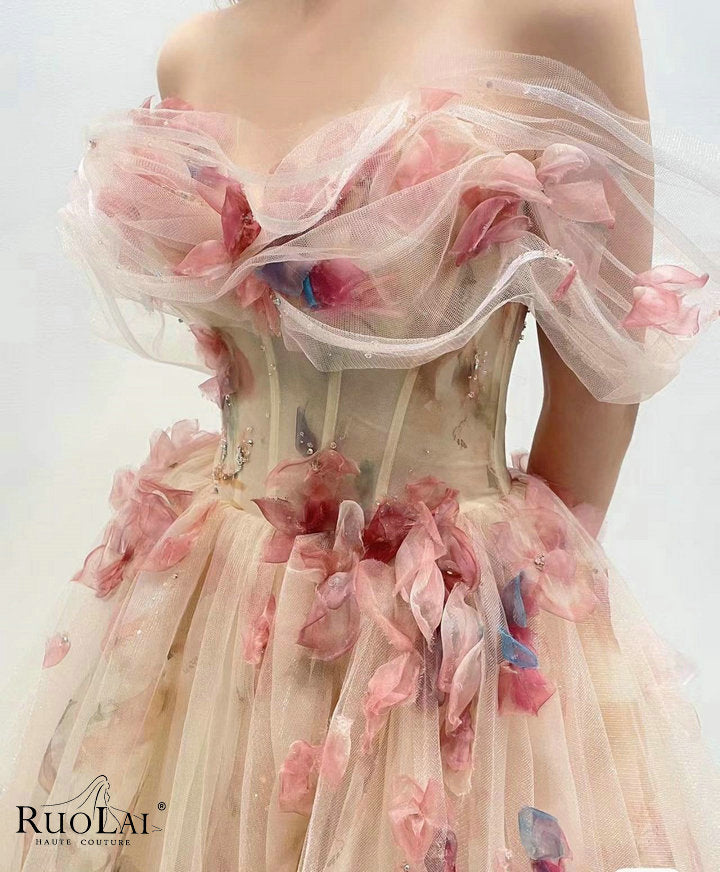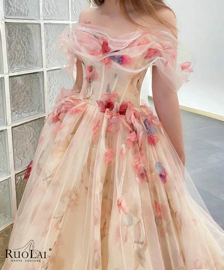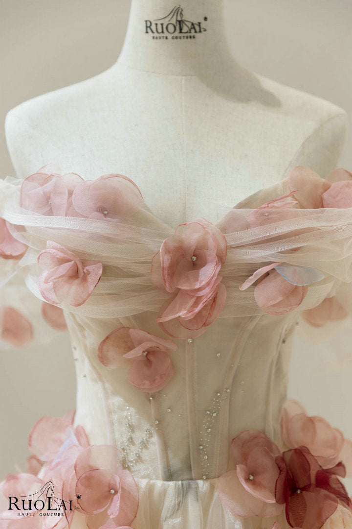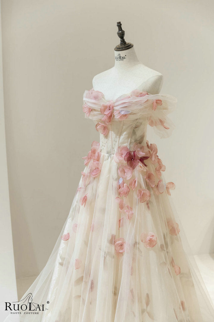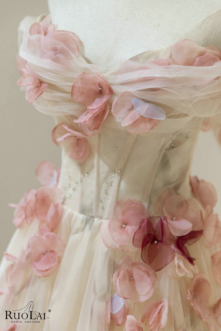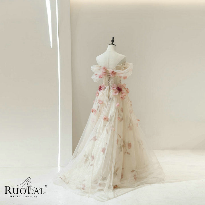 Elegant Sweetheart Neck Off The Shoulder A-Line Tulle Gowns for Women Evening Dresses 3D Flower With Pearls Women Evening Dresses
