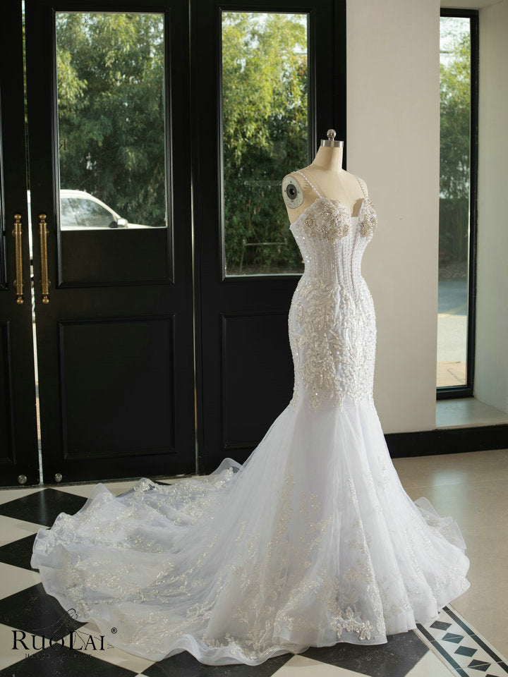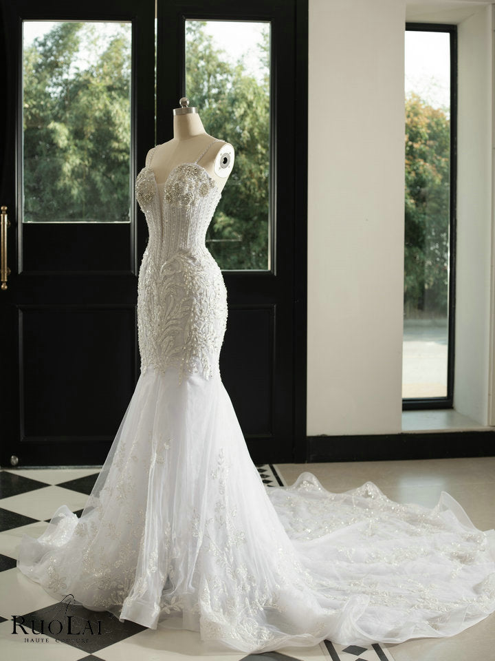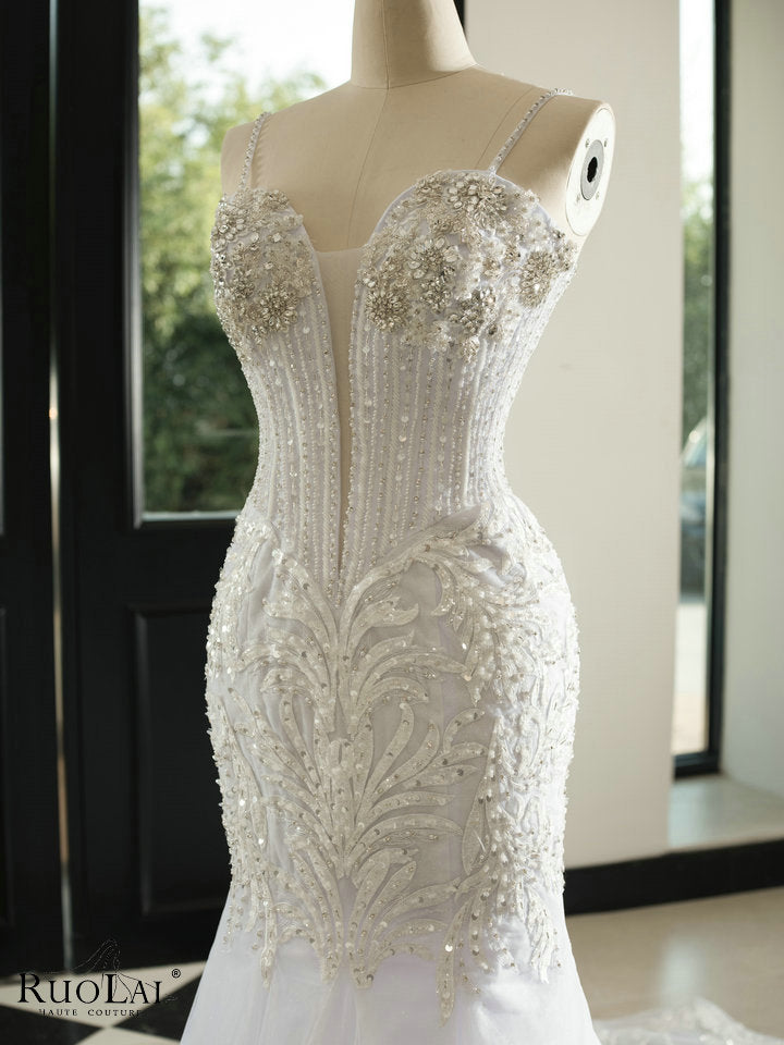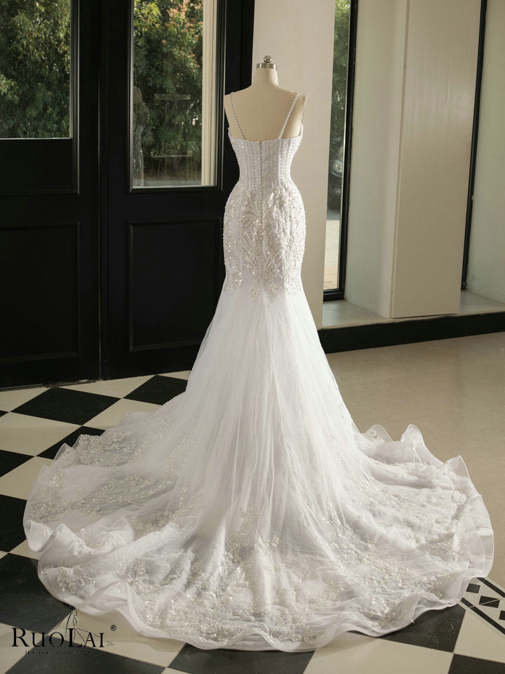 Gorgeous V-NECK Wedding Dress Mermaid 2025 Bridal Lace See Through New Arrival Luxury Beaded Wedding Gown