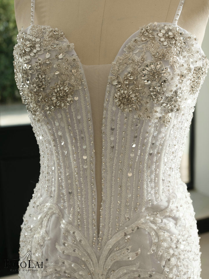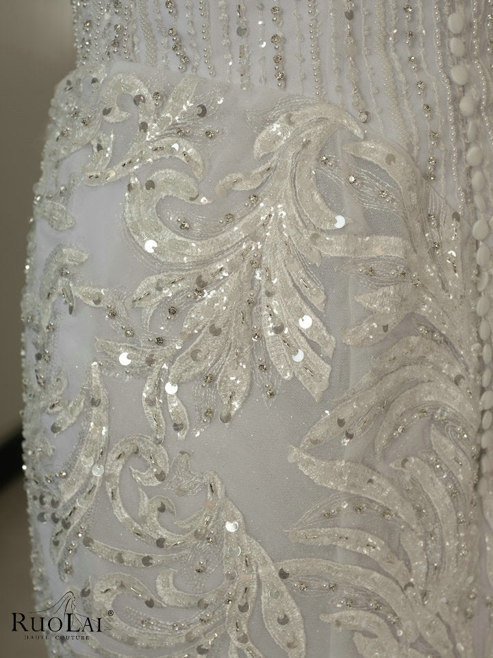 QW02153 Luxury Beaded Lace V Neck Bridal Dress