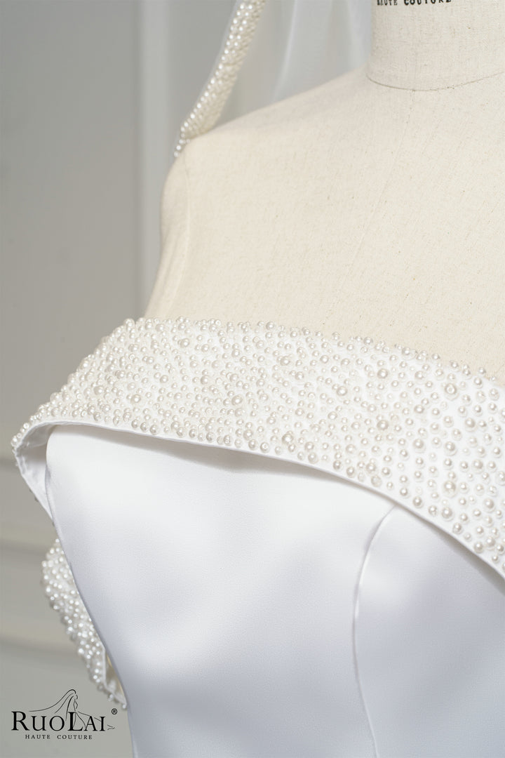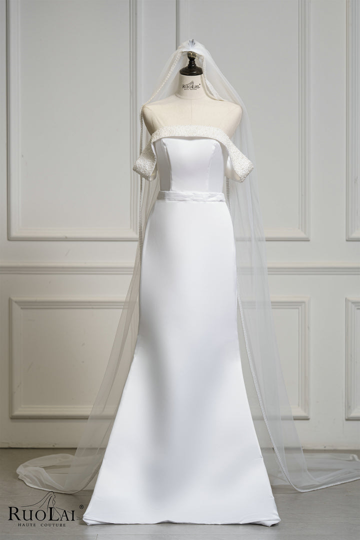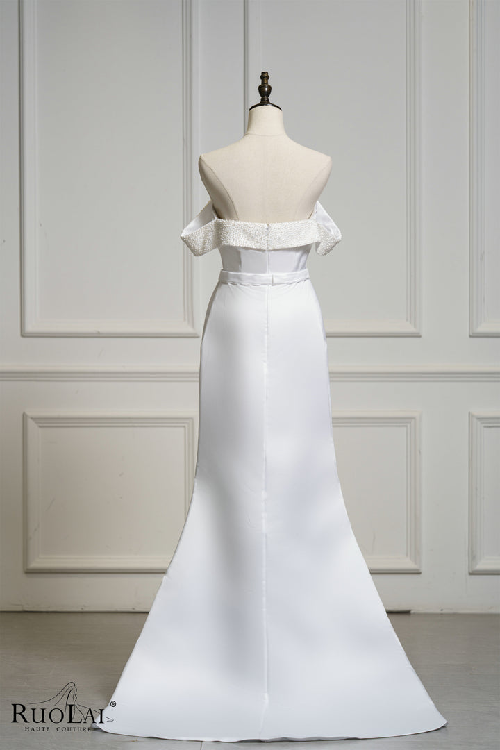 QD06110 Beach Beading Design Strapless Mermaid Satin Bridal Gown