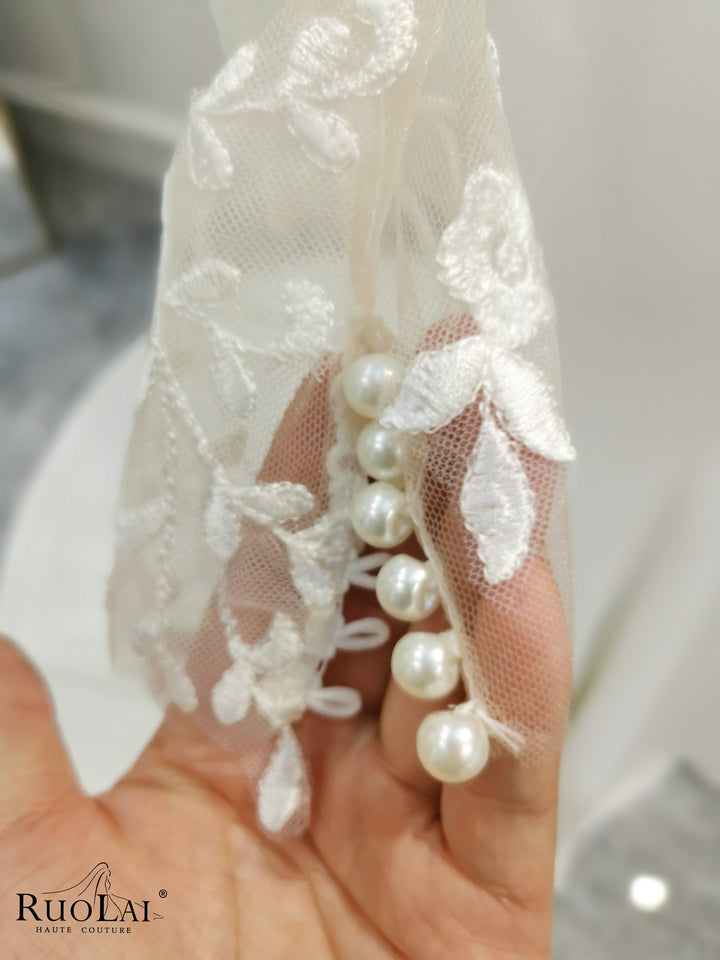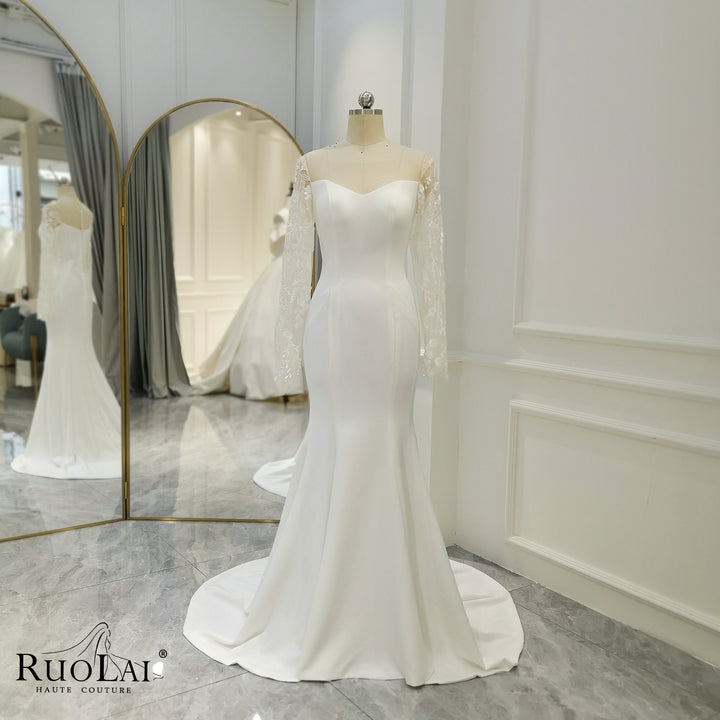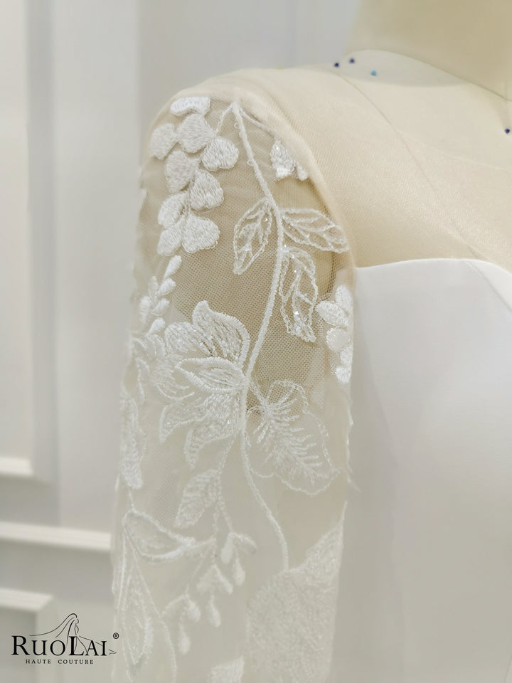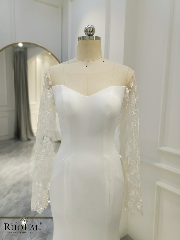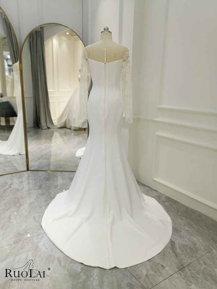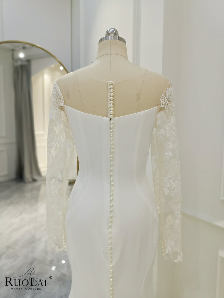 QD06136 Boho Lace Appliques Pleat Long Sleeves Mermaid Wedding Dresses