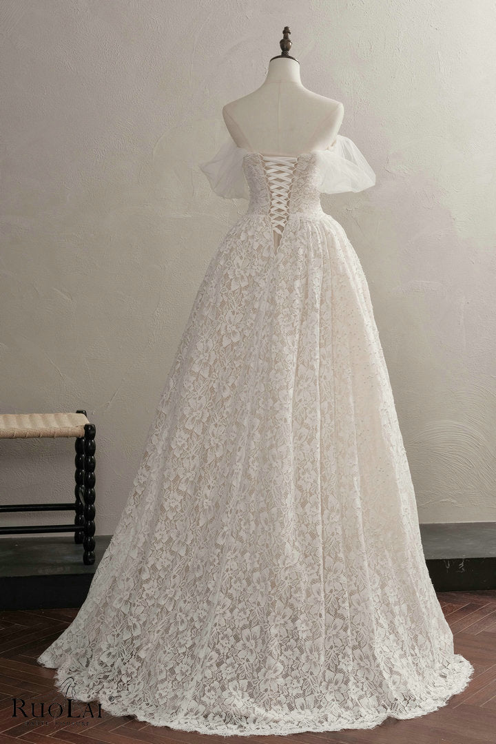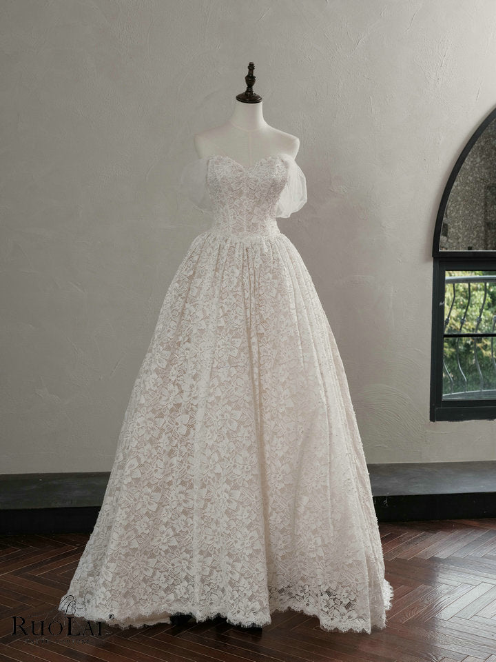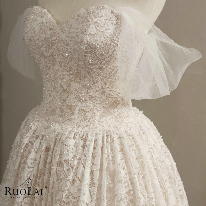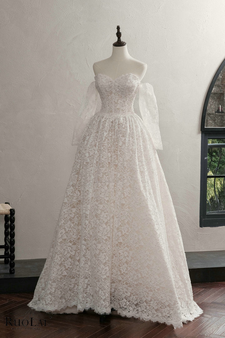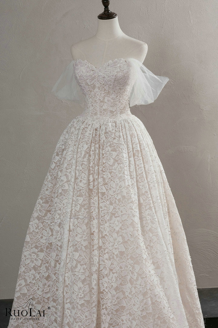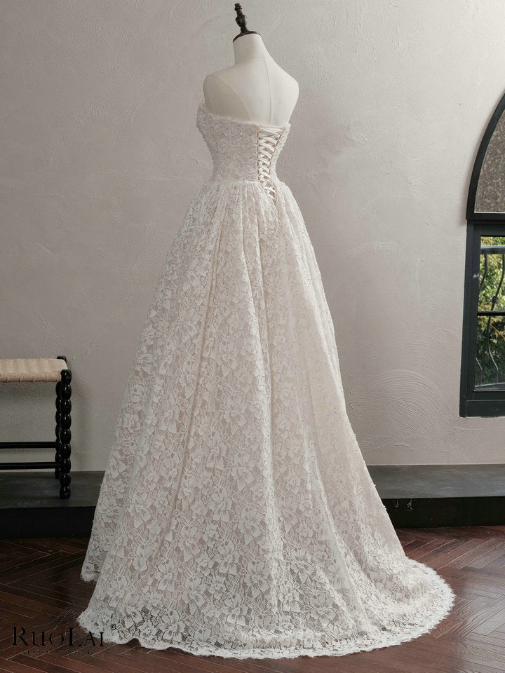 QW02161 Classic Sweetheart Neck Beaded Lace Wedding Dress