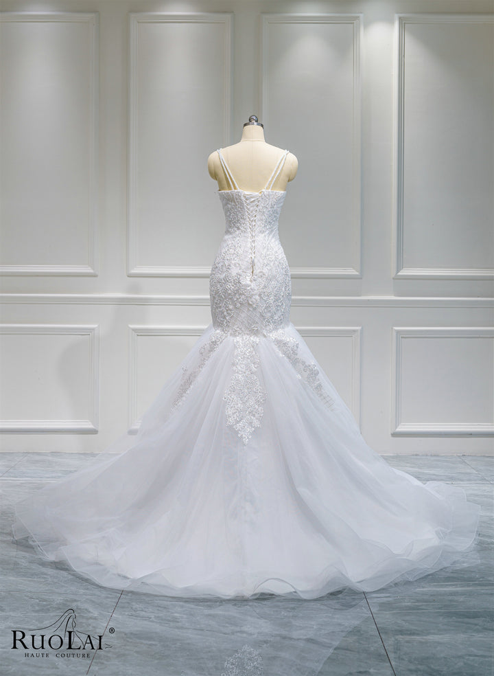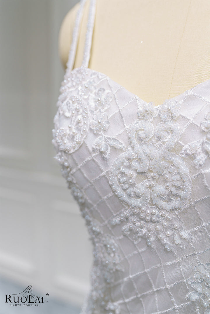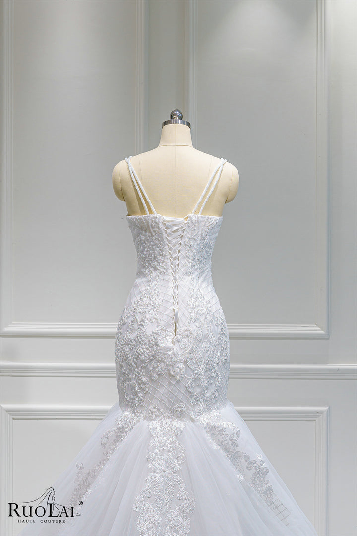 QW01610 Elegant Beaded Design Spaghetti Straps Mermaid Wedding Dress