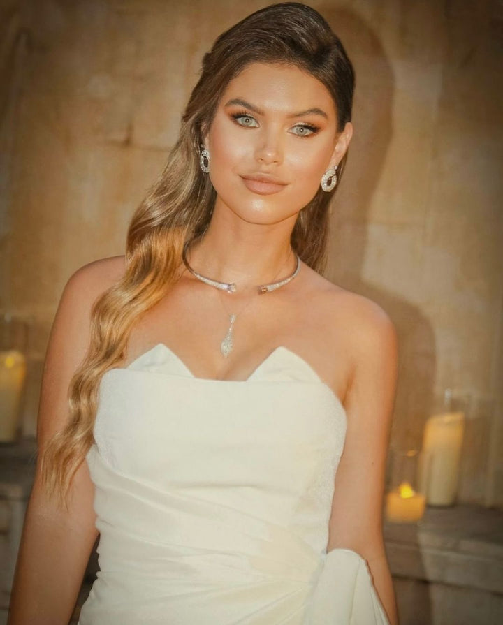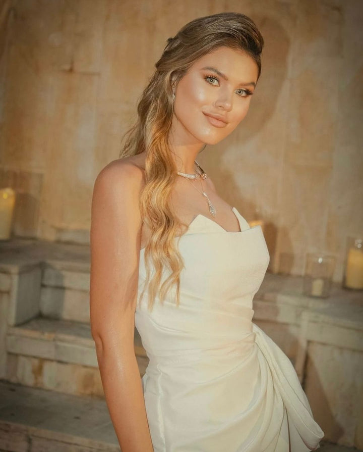 Fashion White Strapless Off Shoulder Evening Dress Elegant Front Side Slit Draped Long Gown Evening Dress