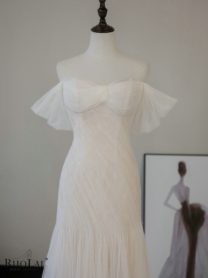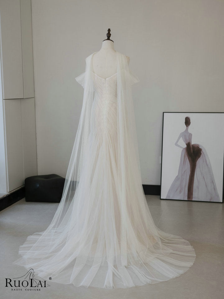 Elegant Mermaid Off Shoulder Draped Scarf Bridal Gowns Sweetheart Neck Ruched Tulle Wedding Dress