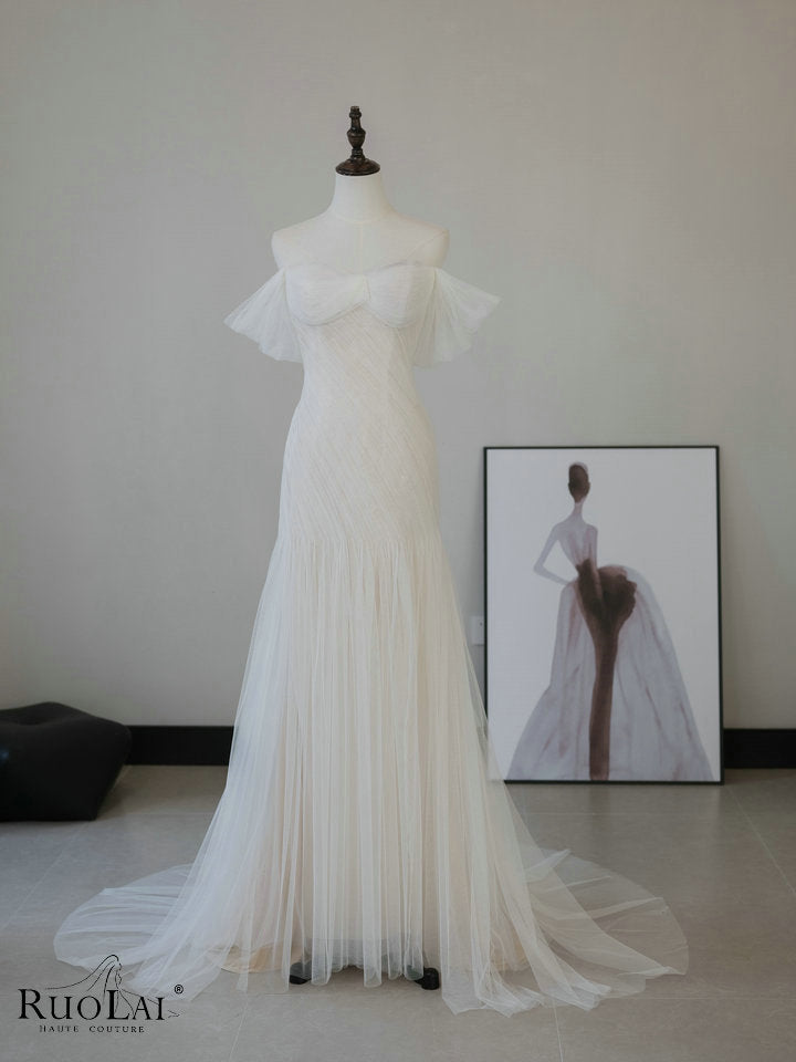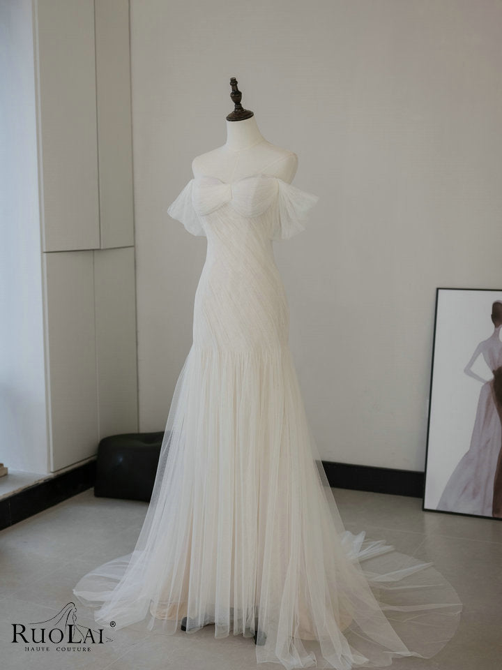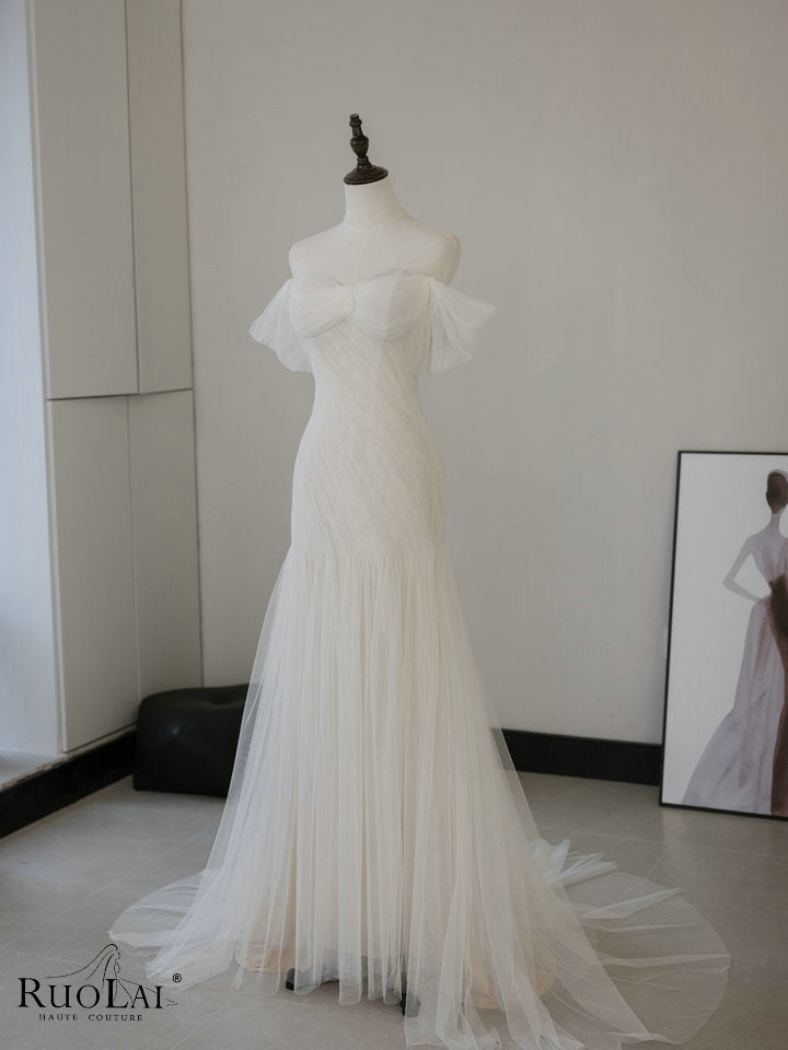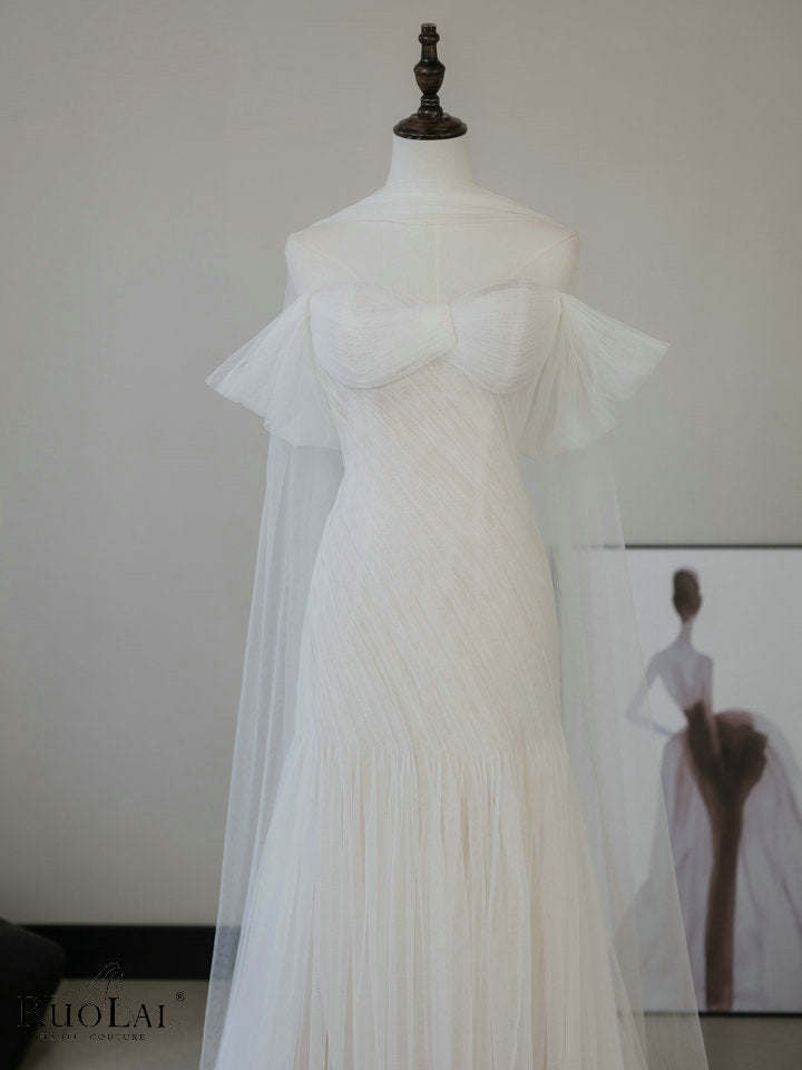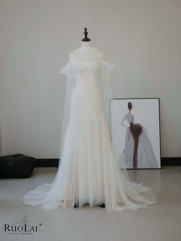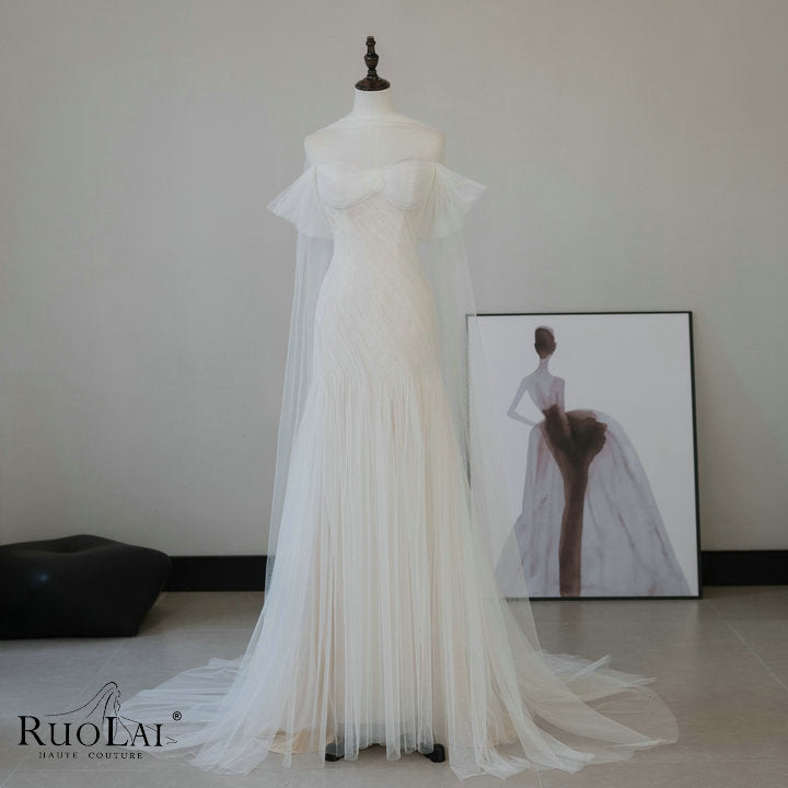 QW02122 Elegant Mermaid Off Shoulder Draped Scarf Bridal Gowns