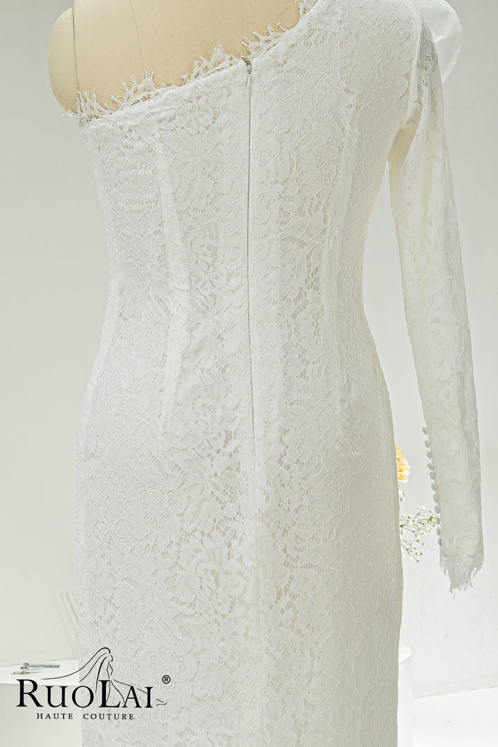Elegant One-Shoulder Asymmetric Sleeves for Women Bridal Dresses