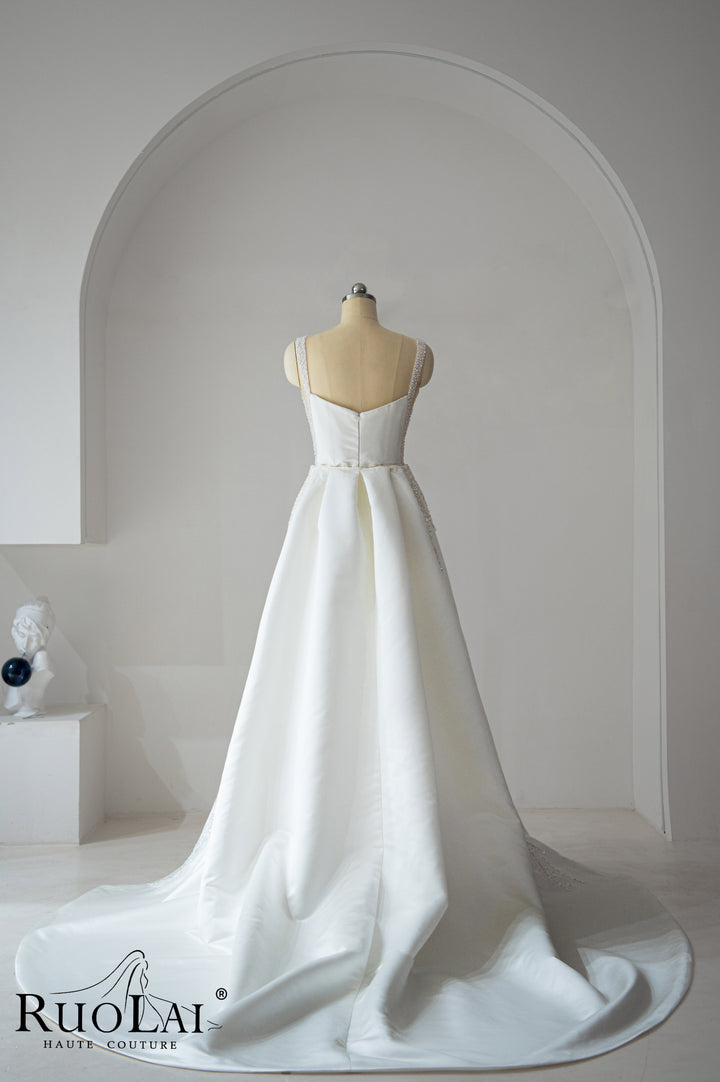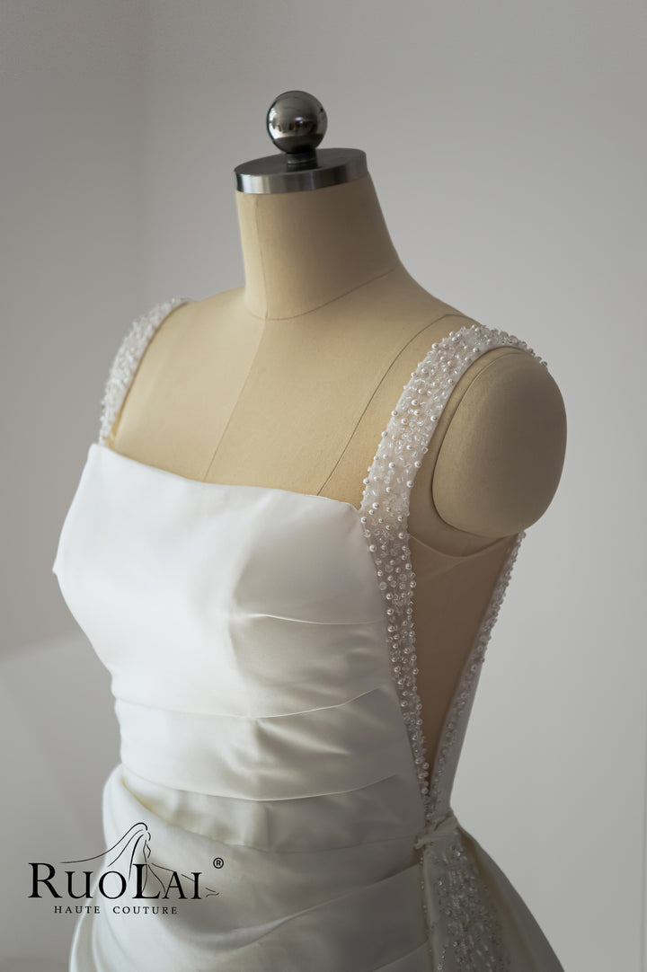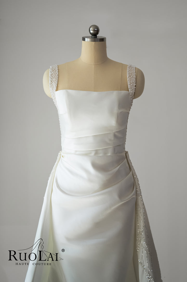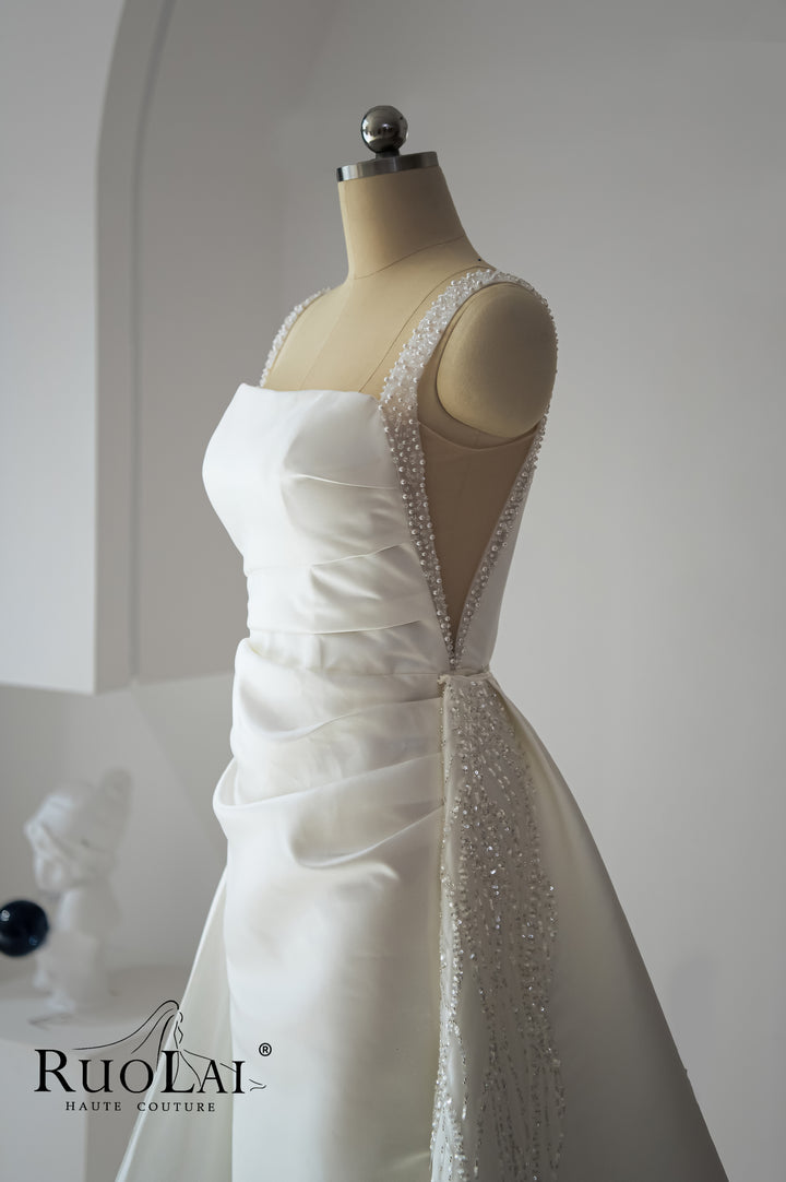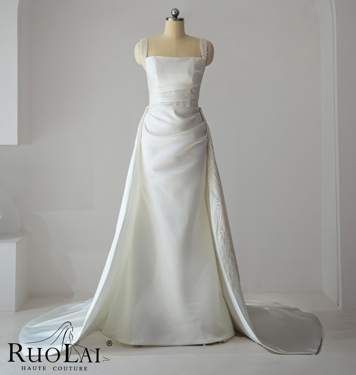 Elegant Square Collar 2 in 1 Beaded Mermaid Wedding Dresses