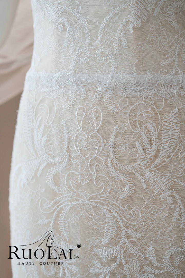 Elegant Sweetheart Neck Lace Mermaid Wedding Dress with Bow