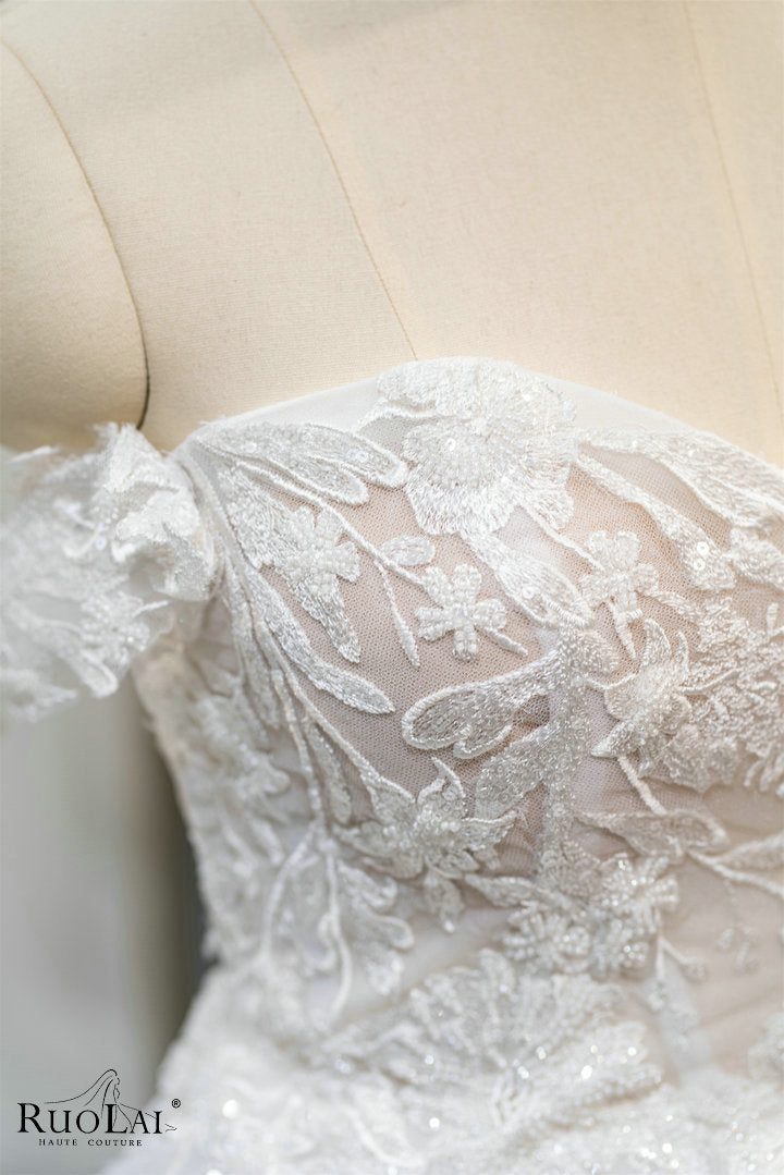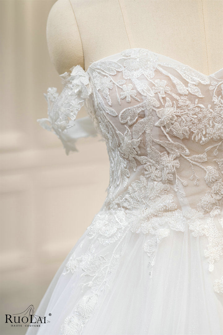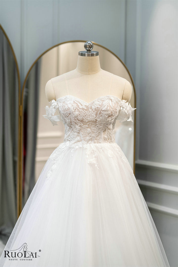 QW01523 Elegant Sweetheart Neck Off the Shoulder Tulle Bridal Gowns