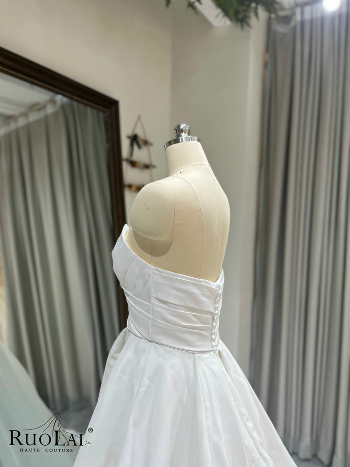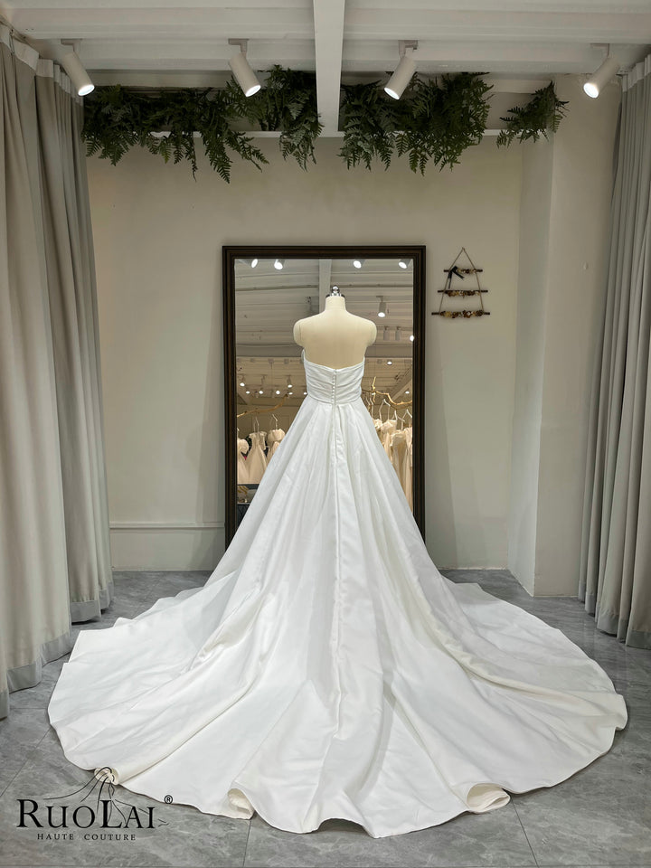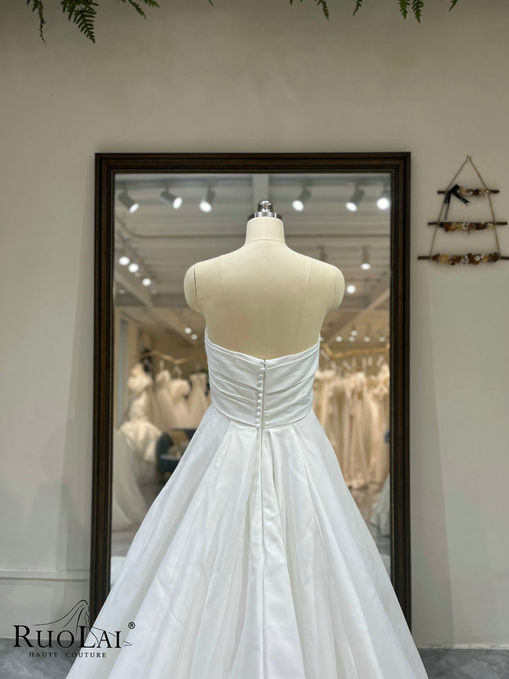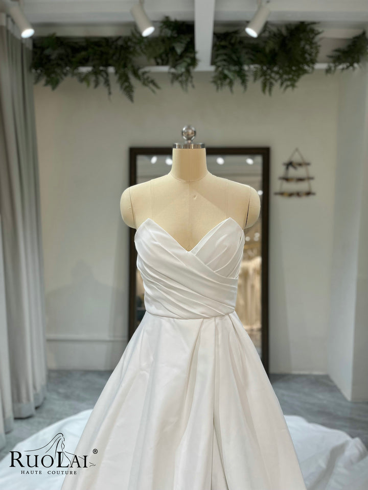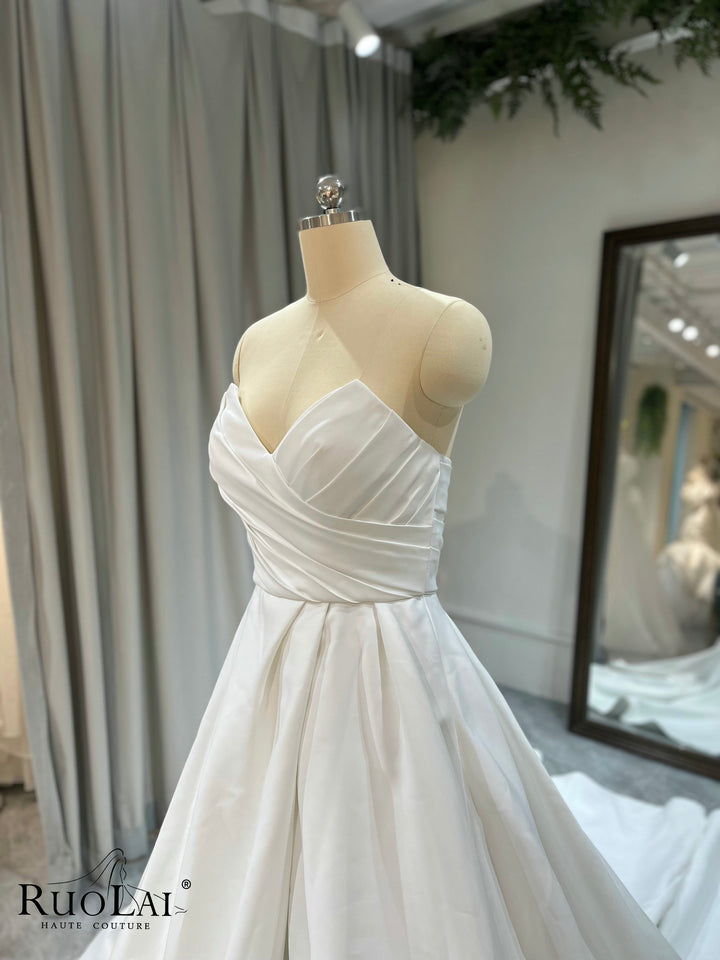 Elegant Sweetheart Neck Pleat A-Line Satin Wedding Dresses