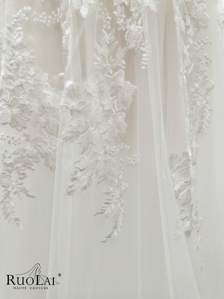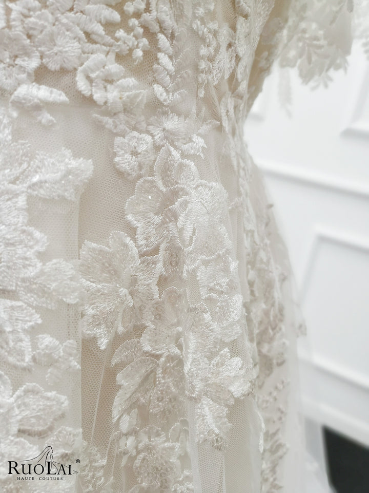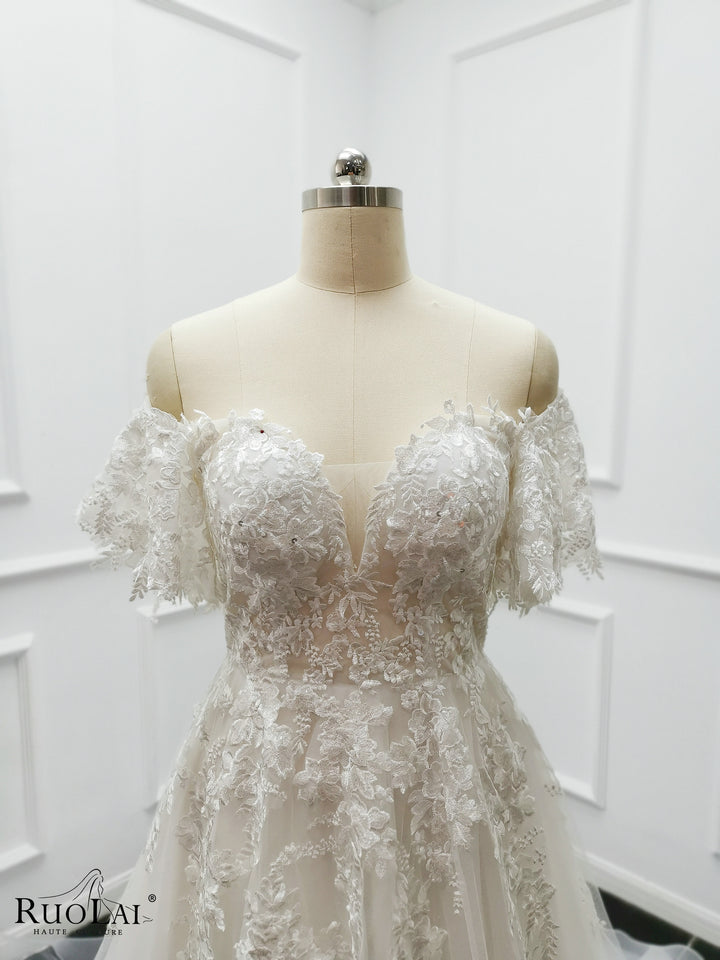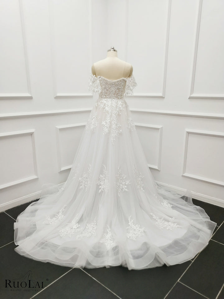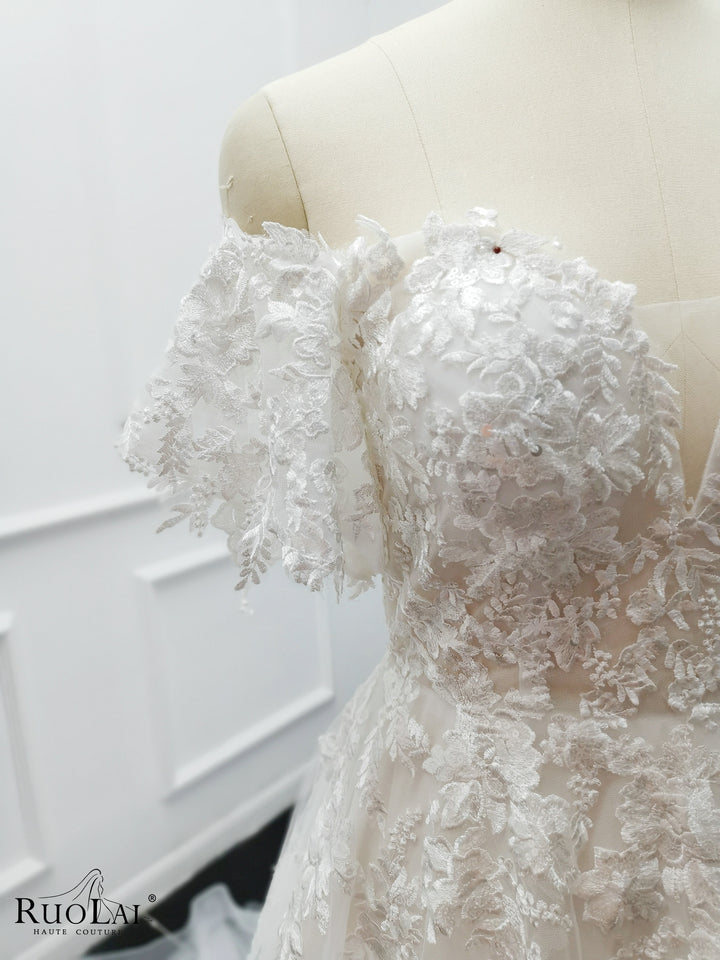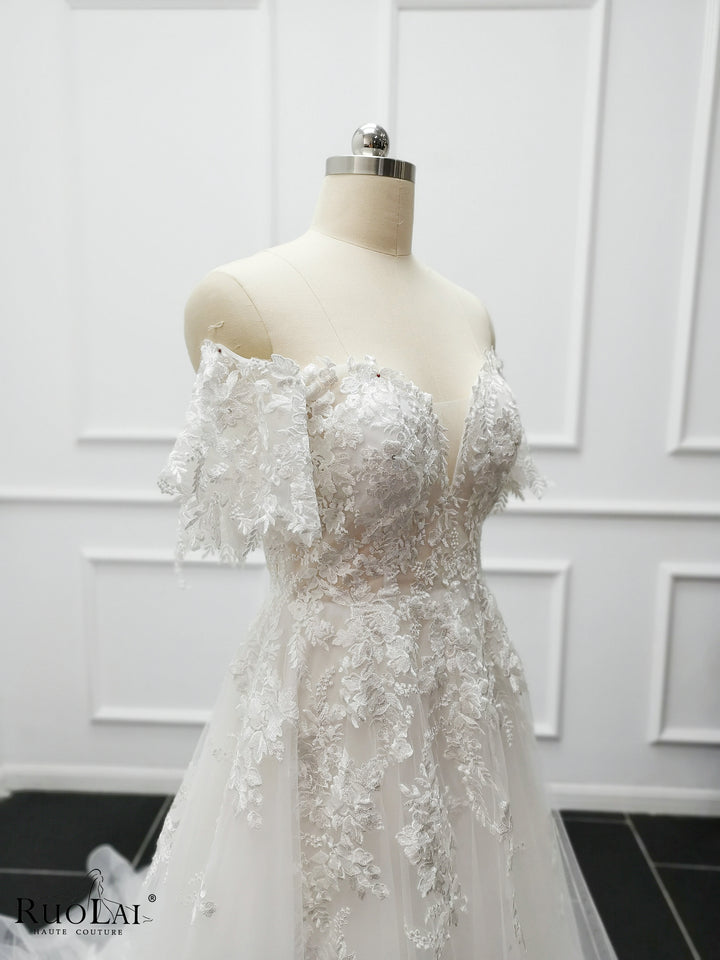Elegant Sweetheart Neck Short Sleeve Laced Wedding Dresses