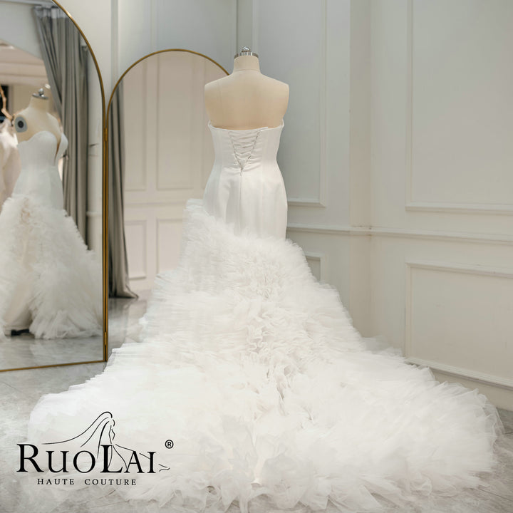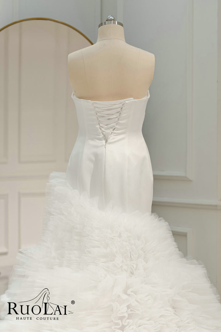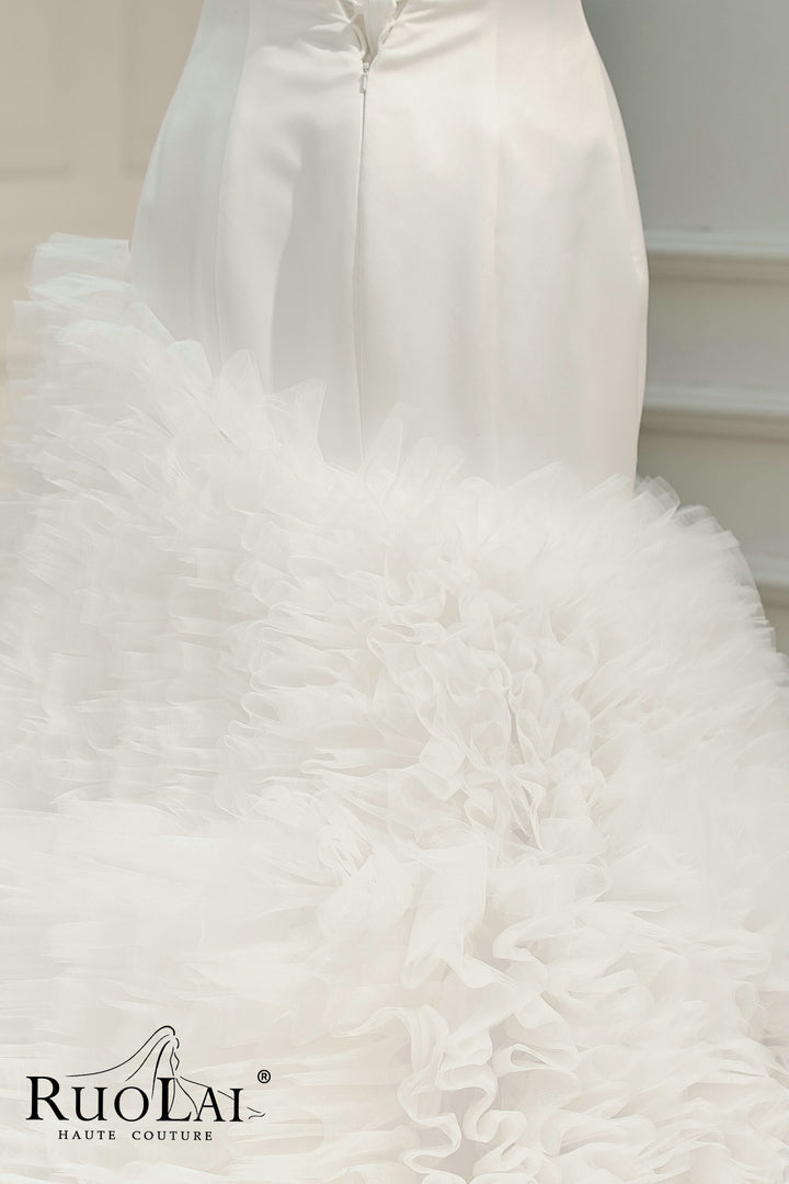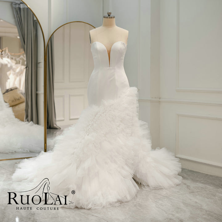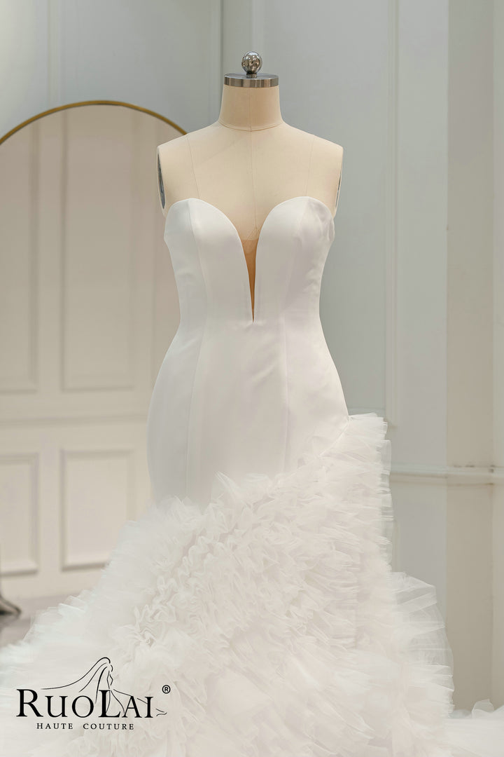 Elegant Sweetheart Neckline Ruffle Tulle Skirt Mermaid Wedding Dresses