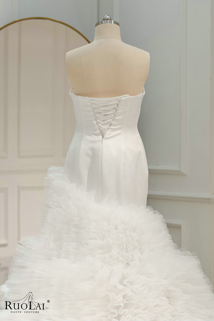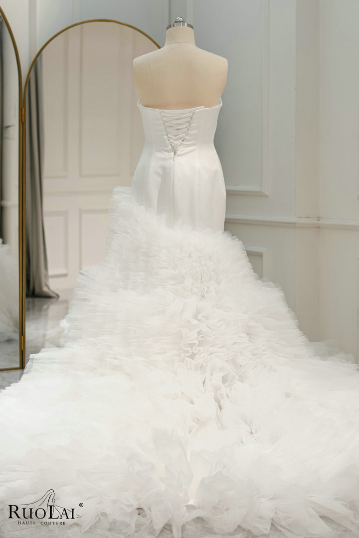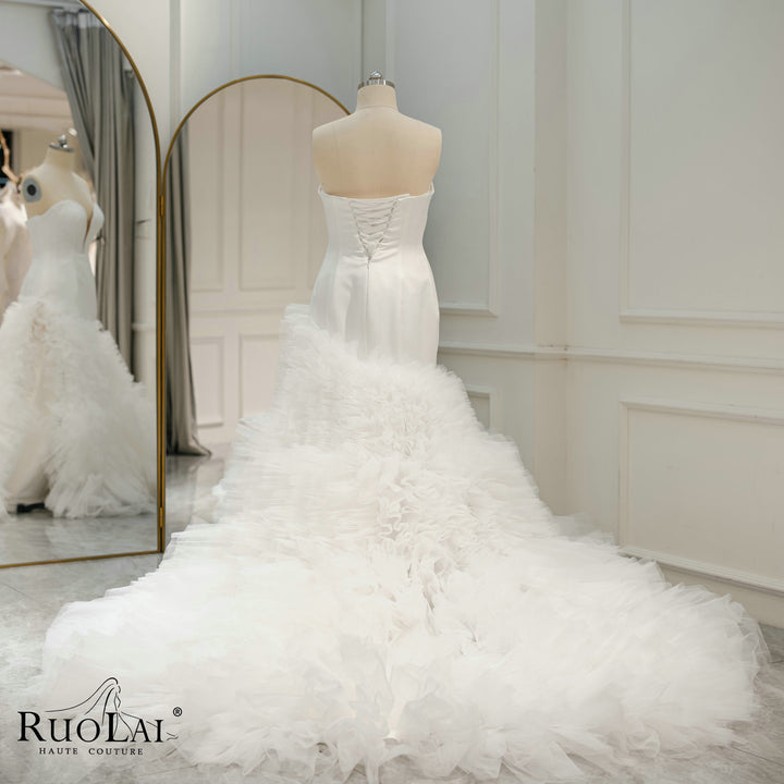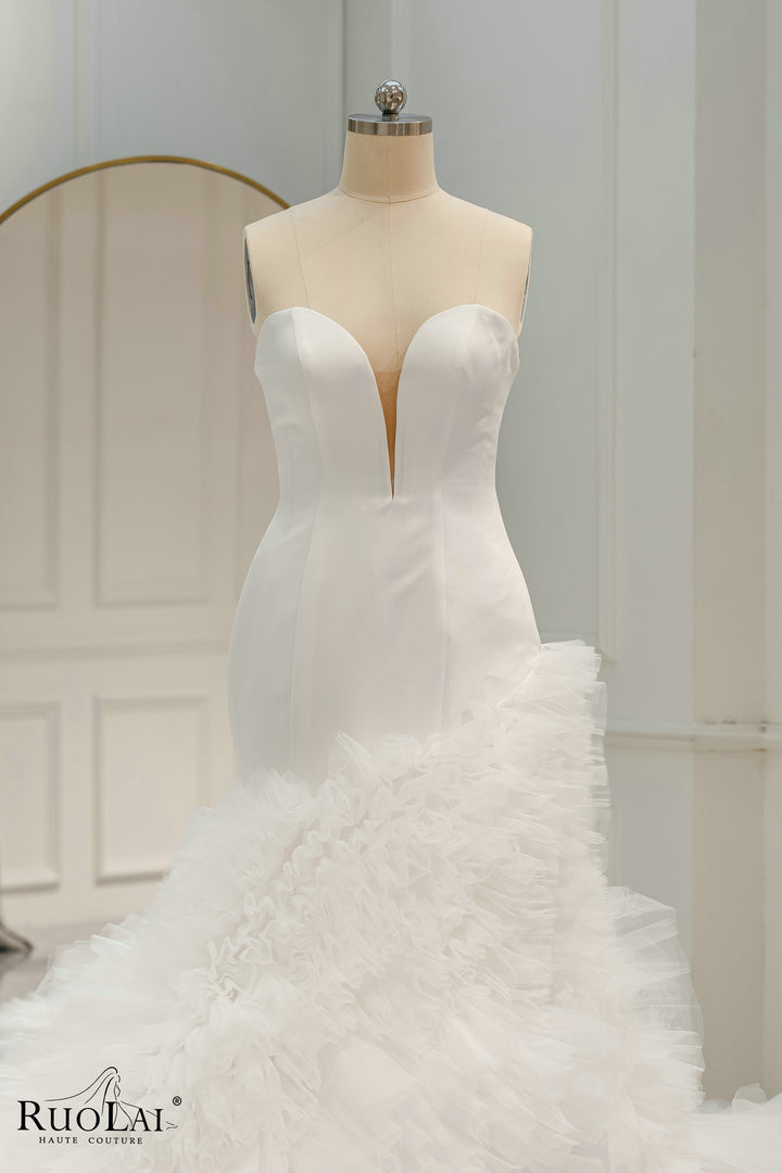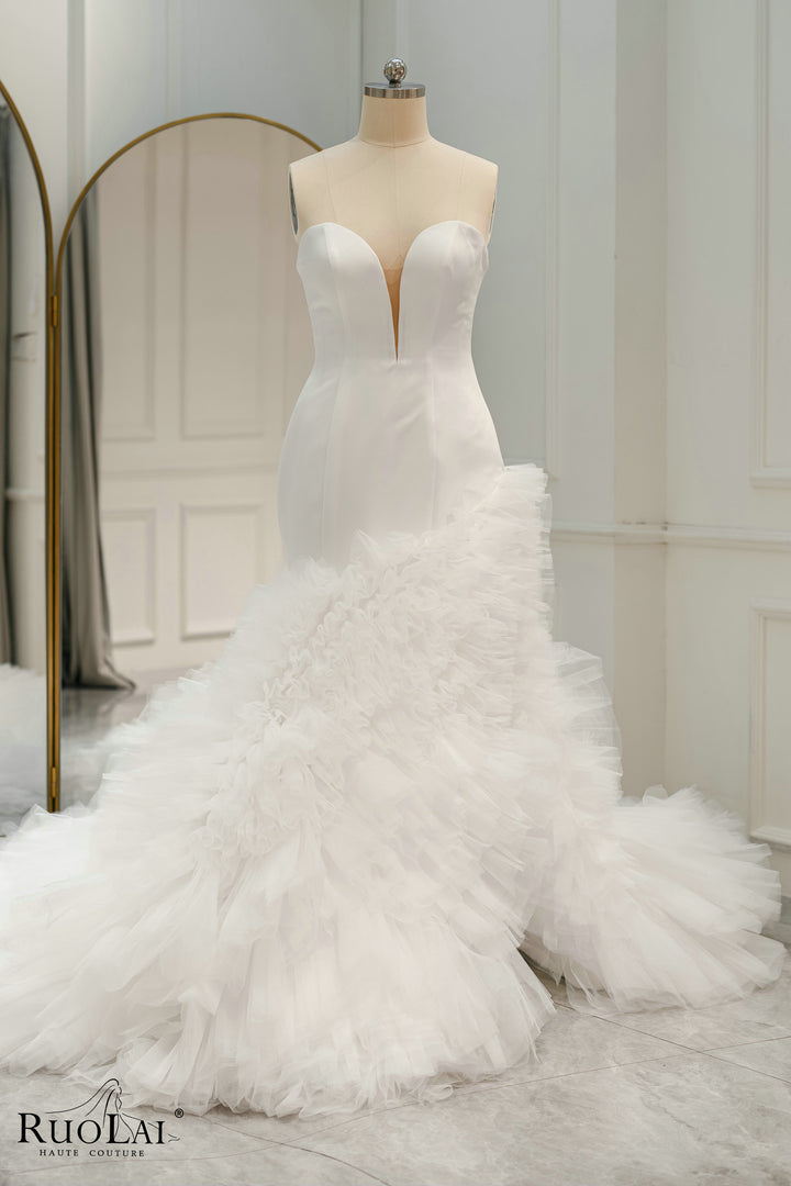 QW01970 Elegant Sweetheart Neckline Ruffle Tulle Skirt Mermaid Wedding Dresses