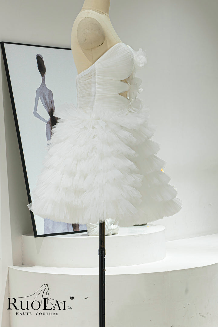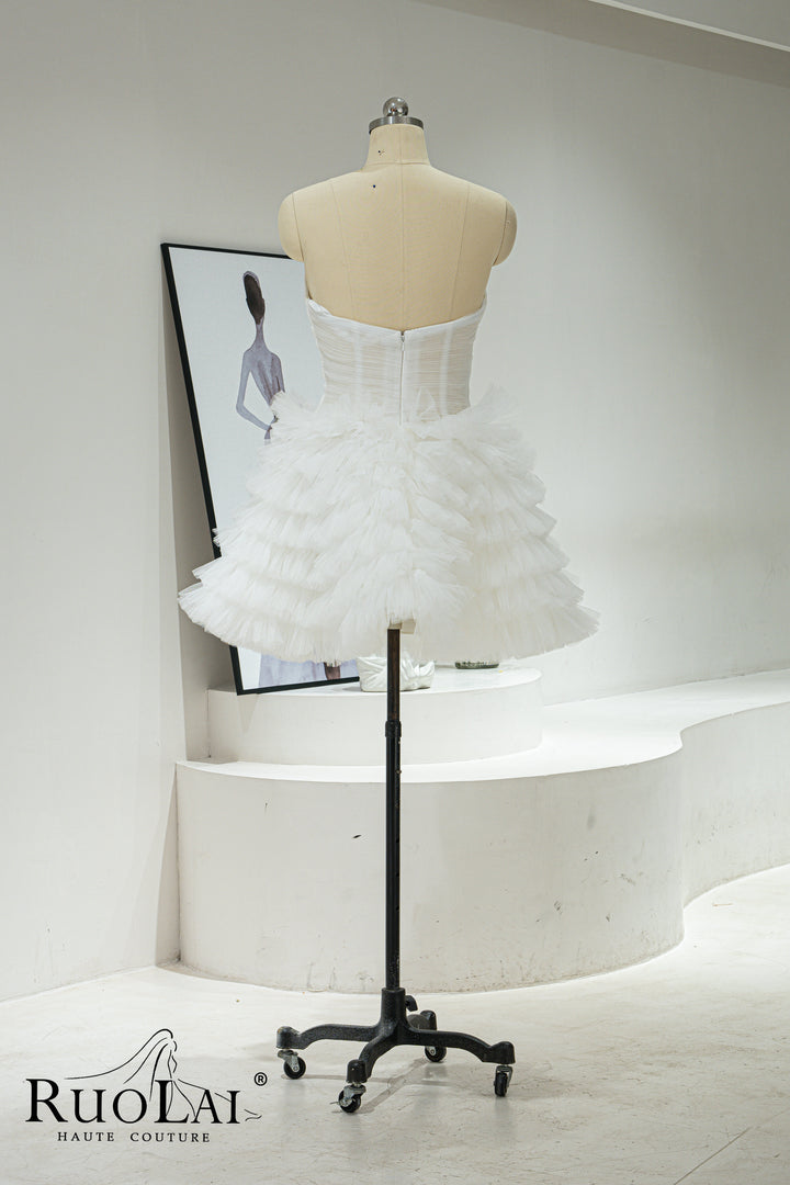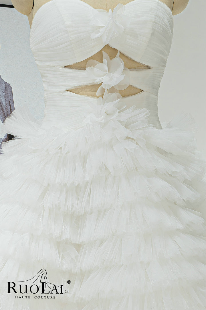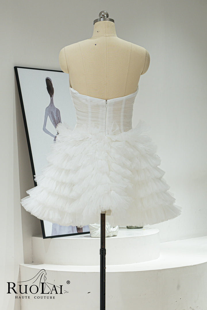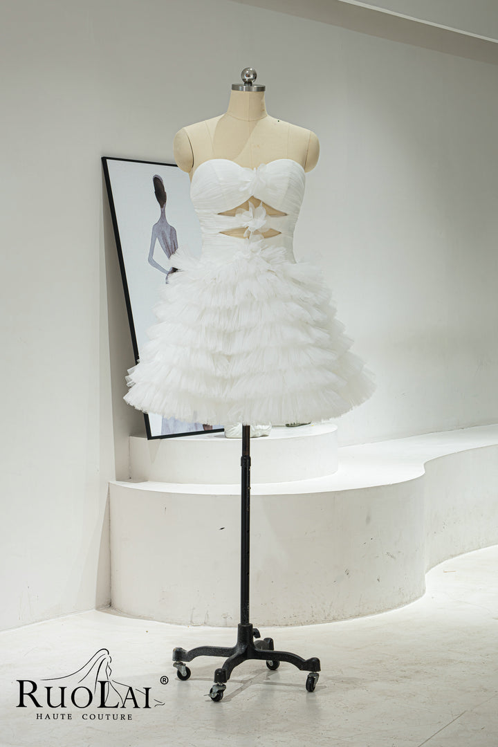 Elegant Sweetheart Neckline Tiered with Bow Tulle Mini Wedding Dresses