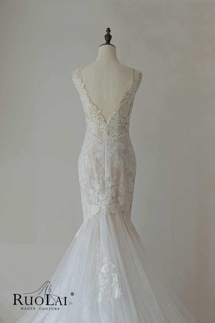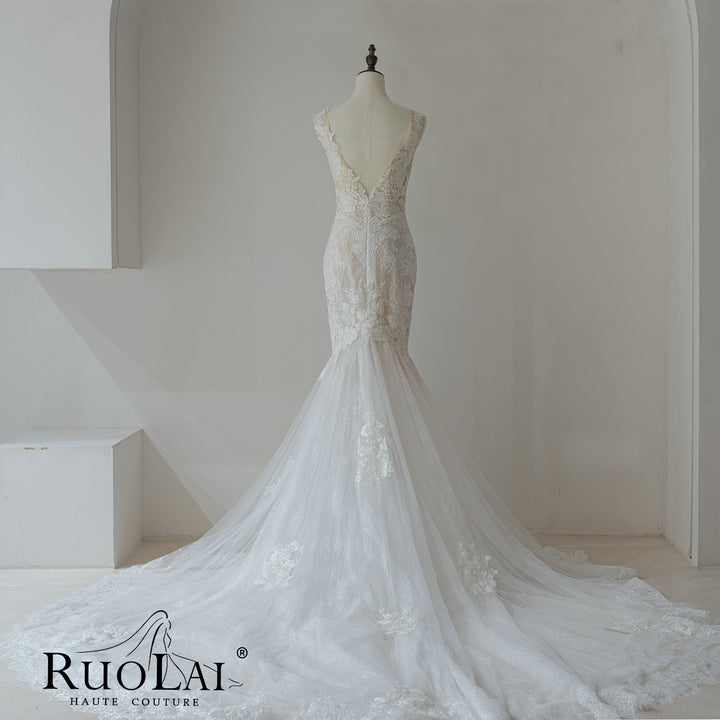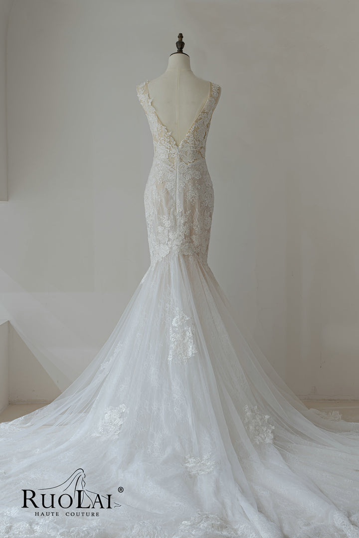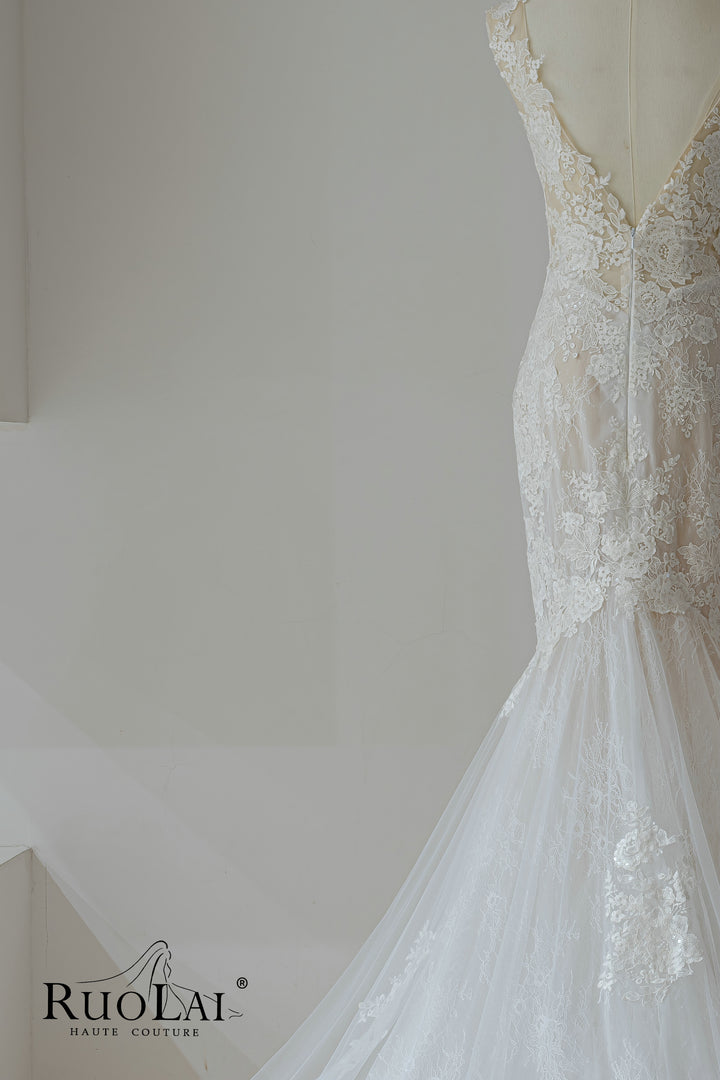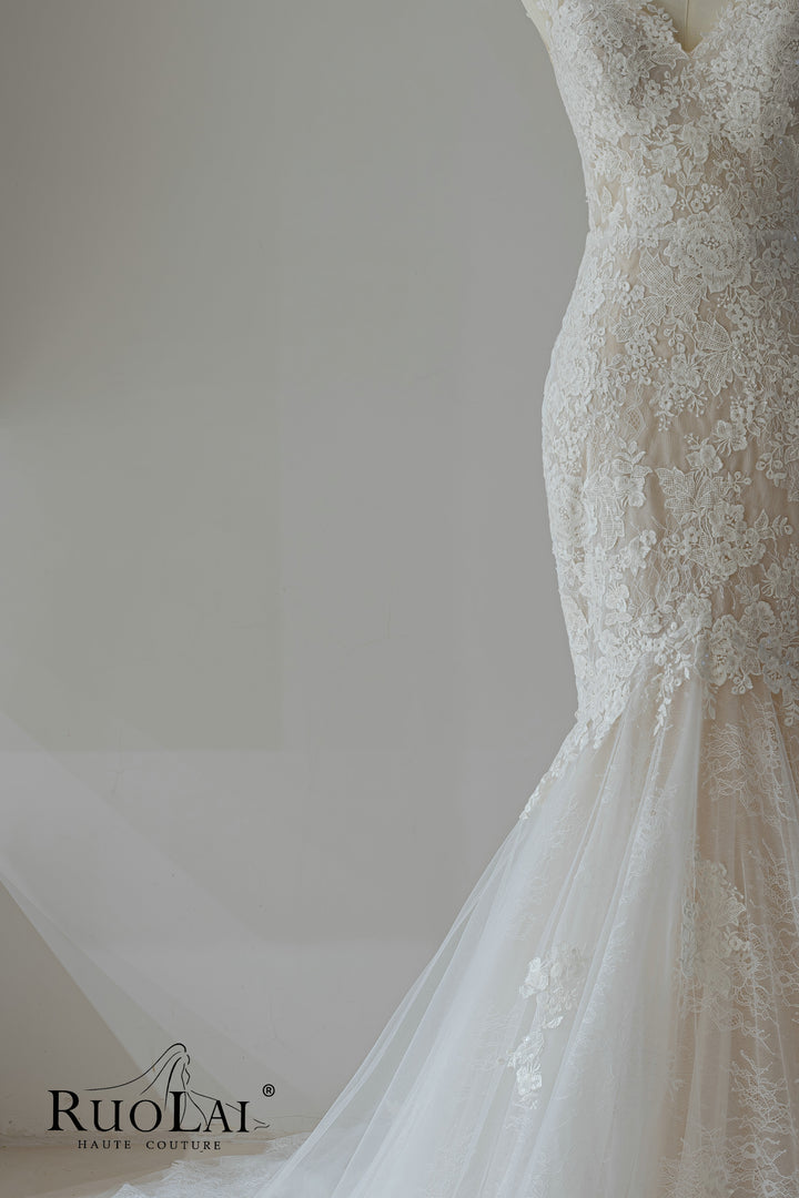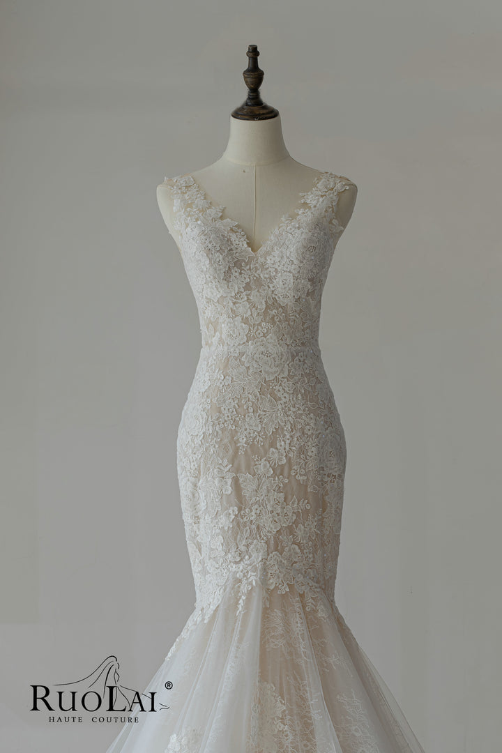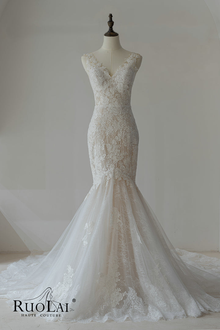 Elegant V Neckline Full Lace Mermaid Wedding Dresses