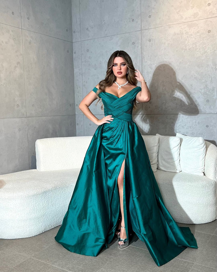Fashion Off Shoulder Sweetheart African Party Evening Dress Front Side Slit Draped Long Gown Evening Dress