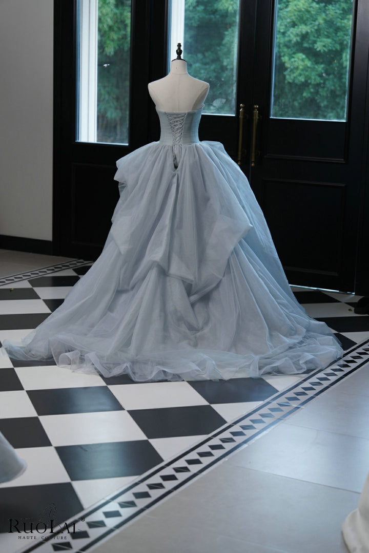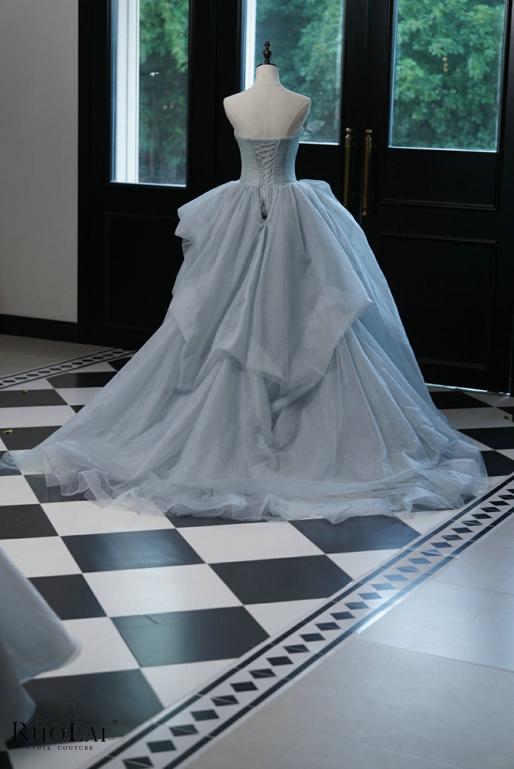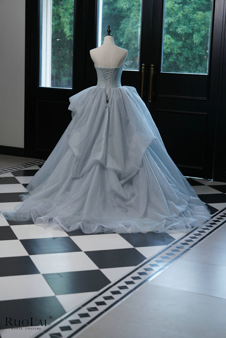 Fluffy New Design Evening Prom Ballgown SWEETHEART Fashion Light Blue Evening Gowns Dresses for Girl