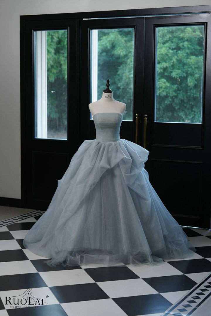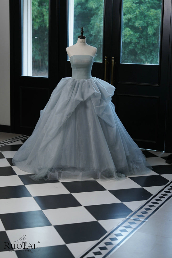 Fluffy New Design Evening Prom Ballgown  Light Blue Evening Gowns Dresses for Girl