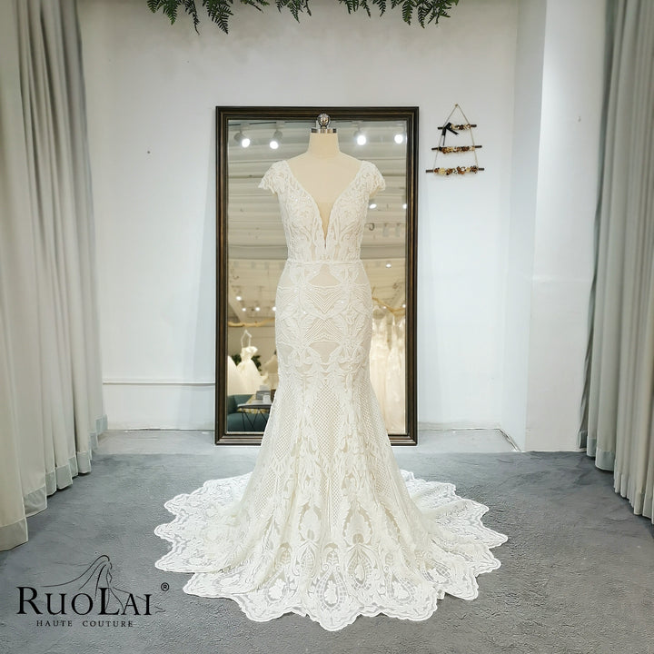 Gorgeous Deep V Neck Mermaid Wedding Dresses Special Sequin Lace Bridal Gowns Sexy Backless Wedding Gown Vestido de Novia