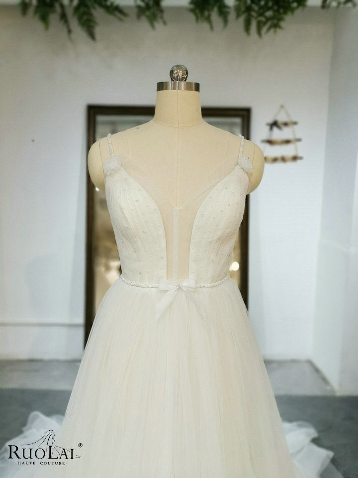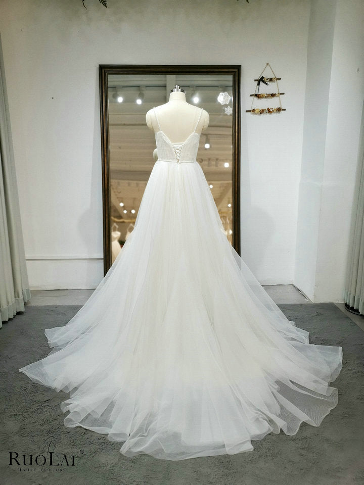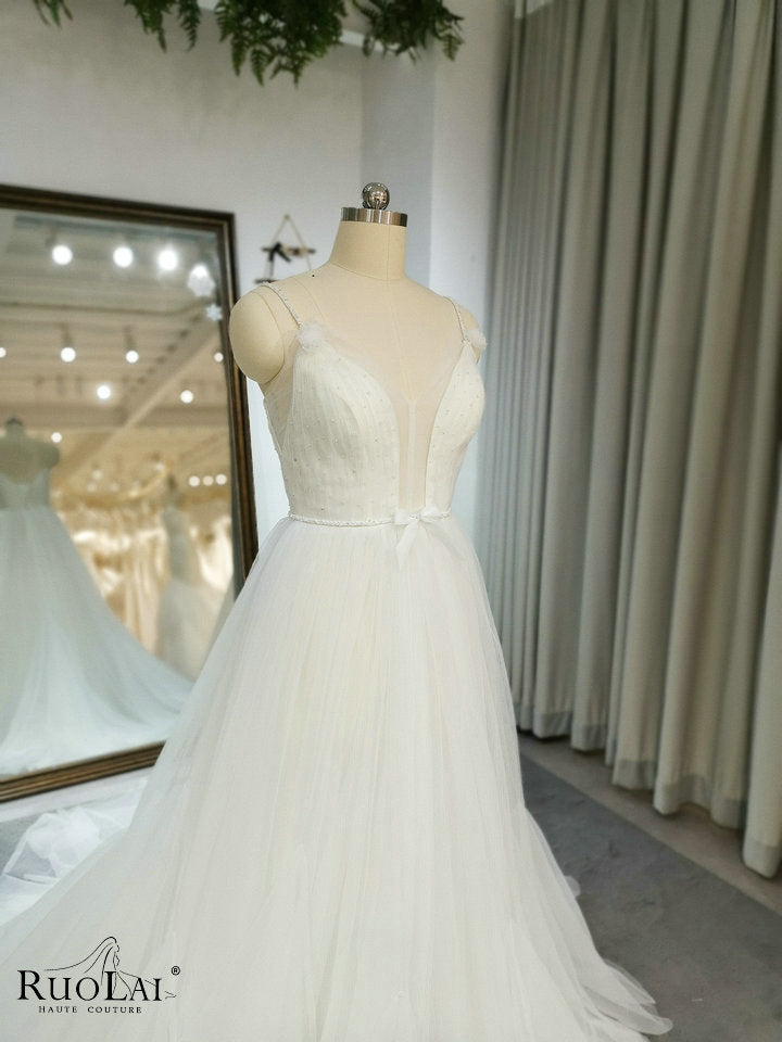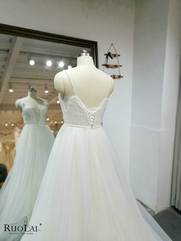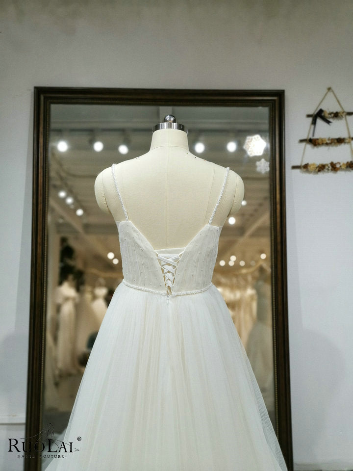 QW01323 Gorgeous Spaghetti Strap Tulle Wedding Dress