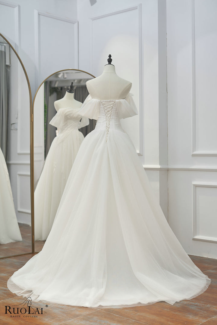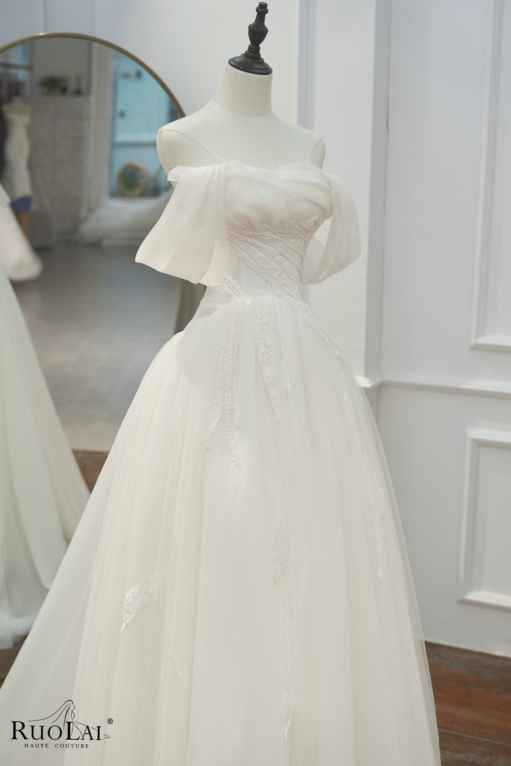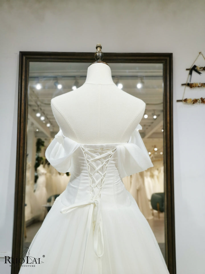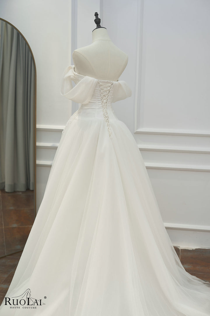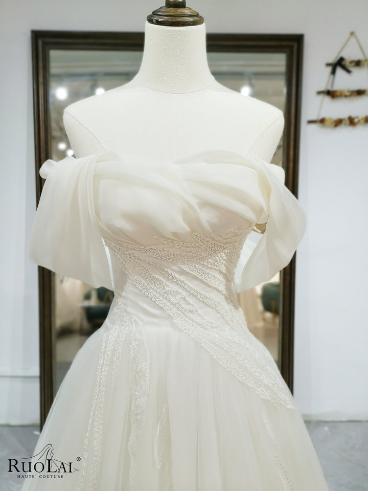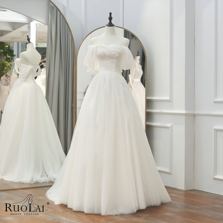 Gorgeous Sleeveless Strapless Wedding Dresses Exquisite Pleat Design Bridal Gowns Lace Appliques Off The Shoulder Robes Backless Vestidos De Novia Customized