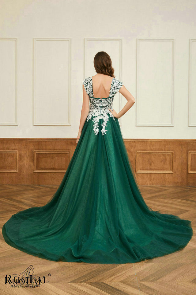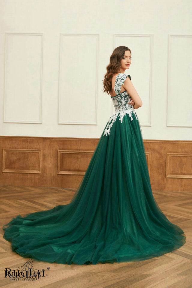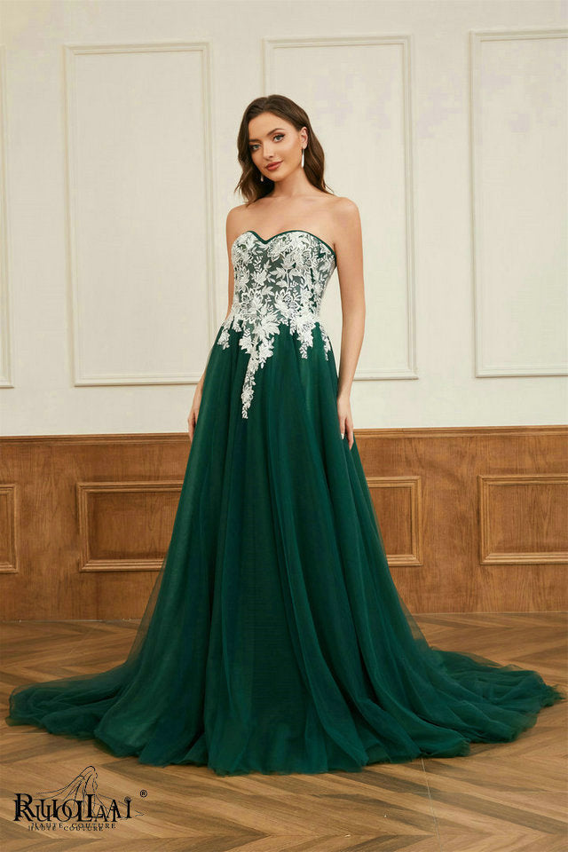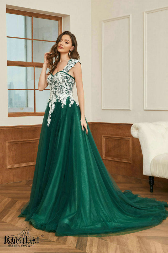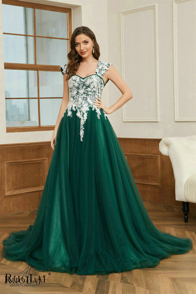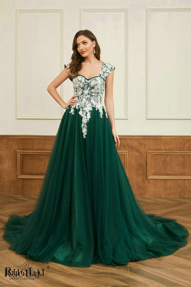 LWC6767 Green Tulle Sweetheart Neck Appliqued Party Formal Dresses