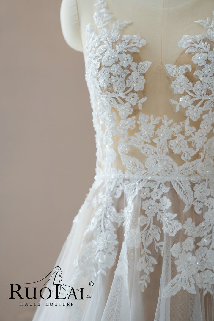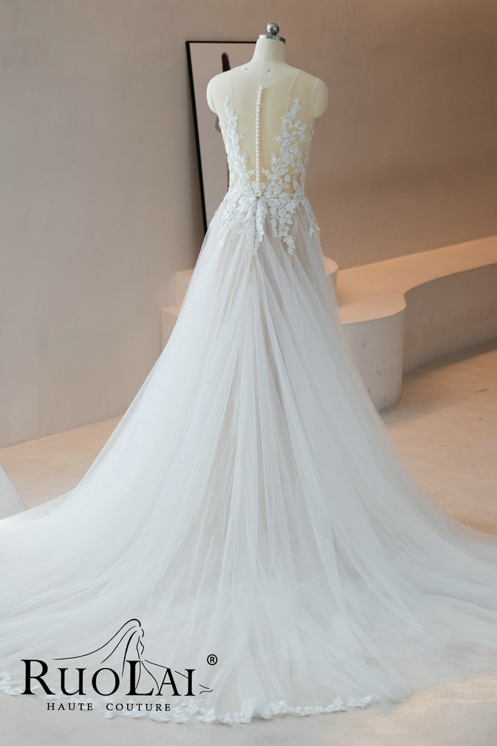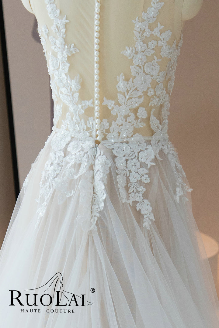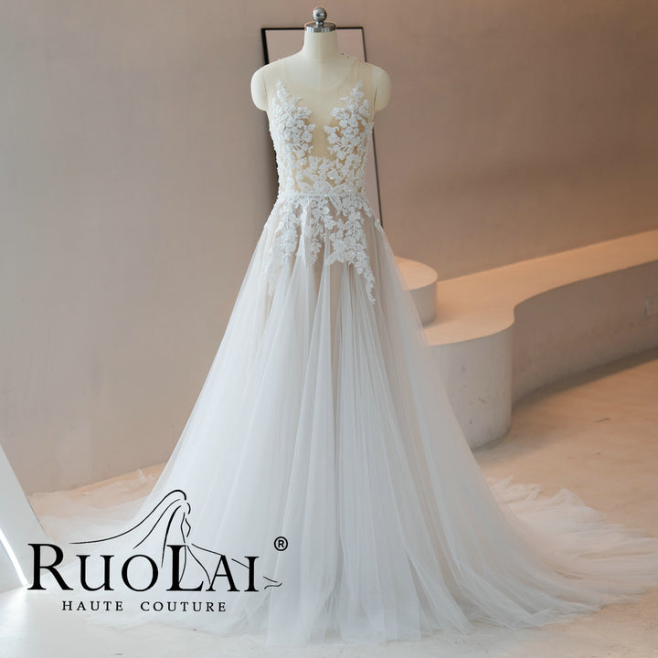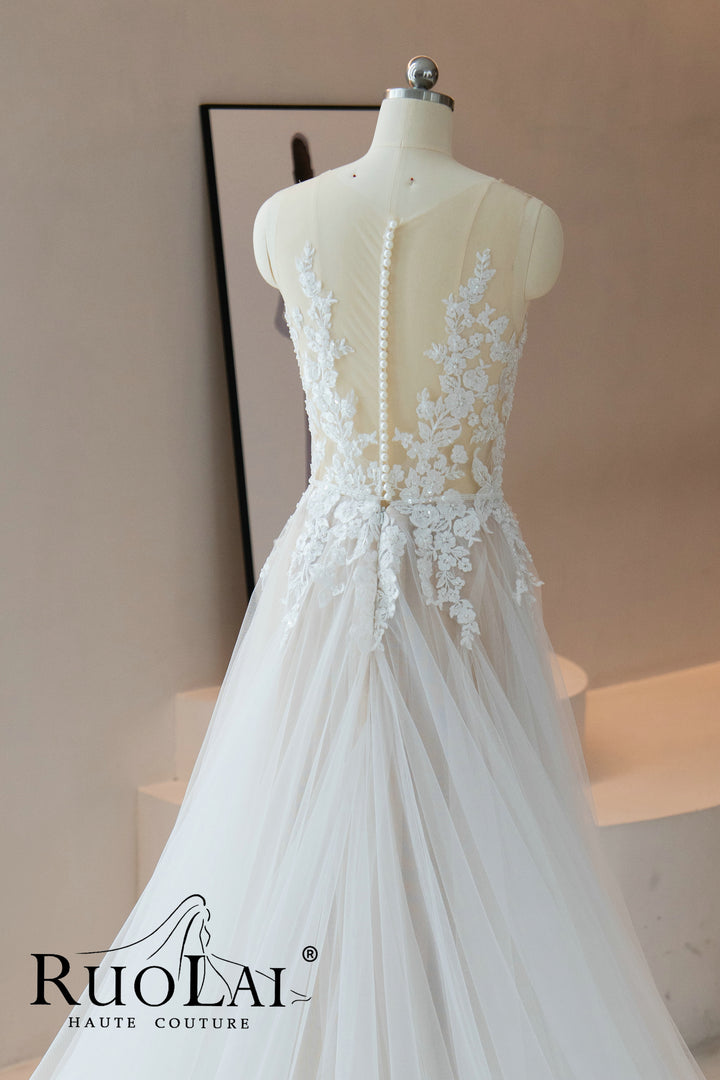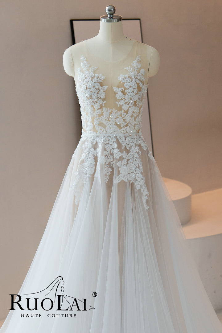 Ivory A Line Tulle Appliques Lace Beading Wedding Dresses