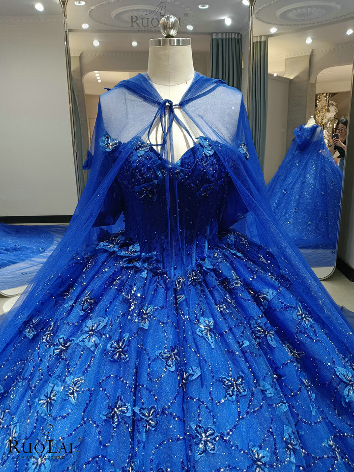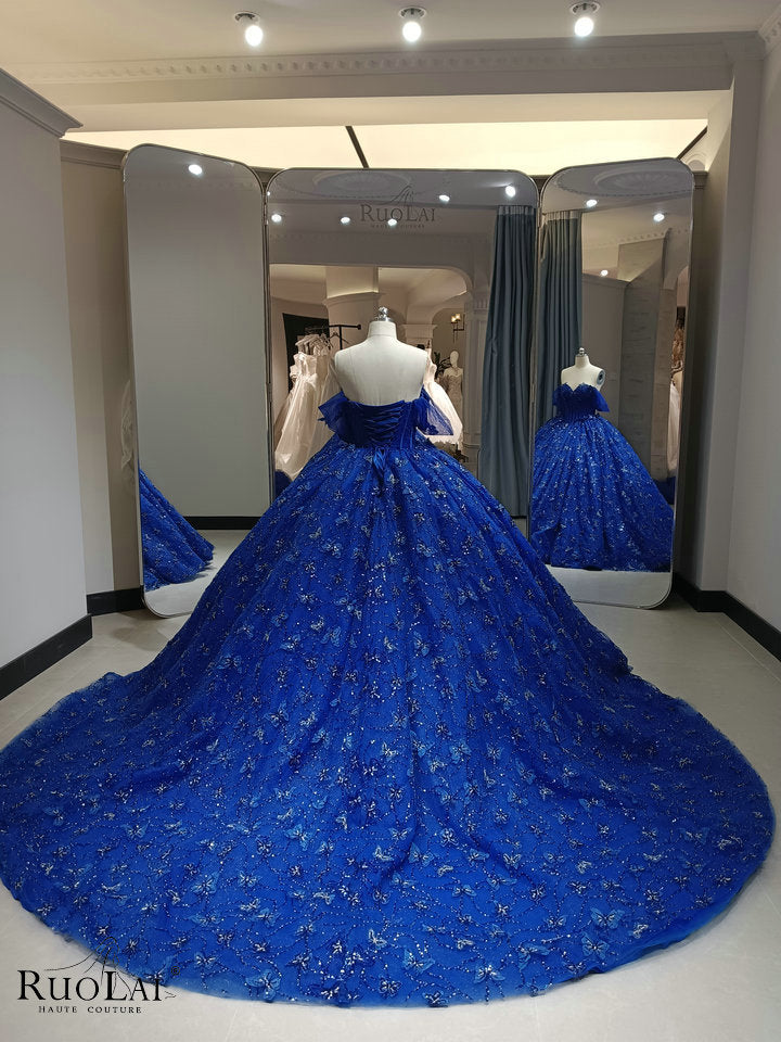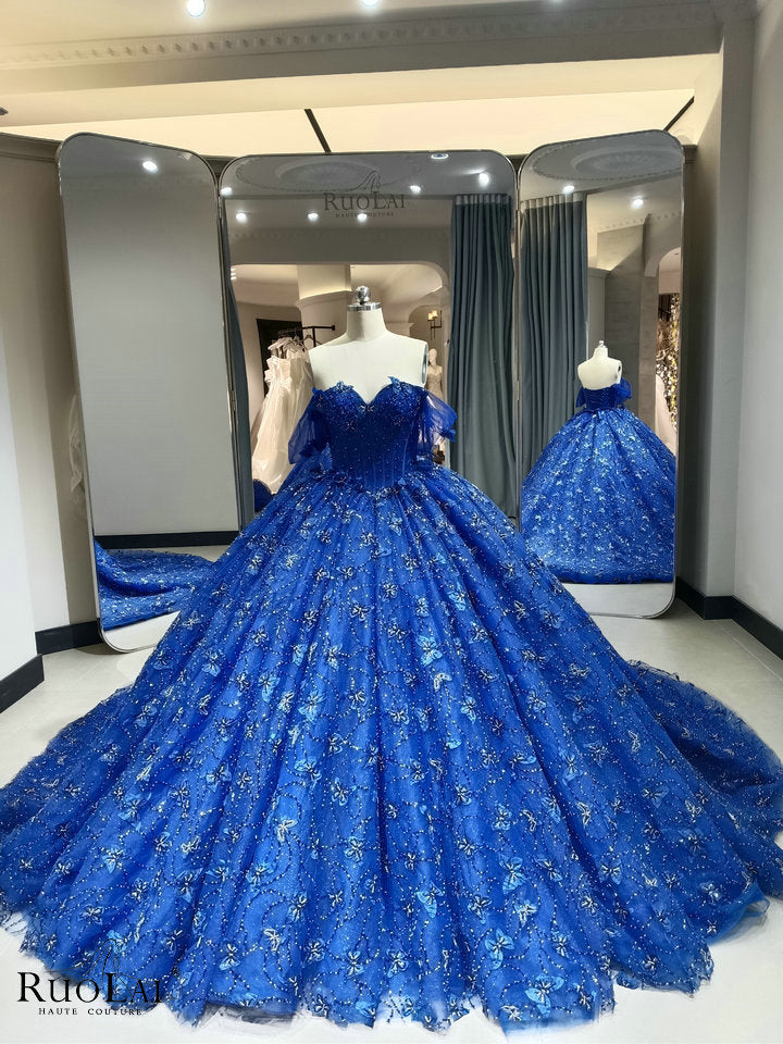 The chic luxurious beading with butterfly off-shoulder corset formal blue quinceanera dress is the perfect finishing touch to your Quinceanera look. Adorned with delicate lace appliqués and glitter, and featuring a delicate sweetheart neckline that accentuates your collarbone and décolletage, this Quinceanera dress perfectly blends elegance with modern style. Its exquisite craftsmanship perfectly flatters your figure, while its understated charm and refined elegance are sure to make you stand out.