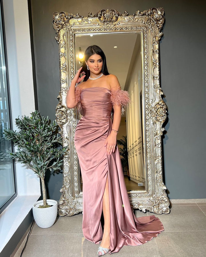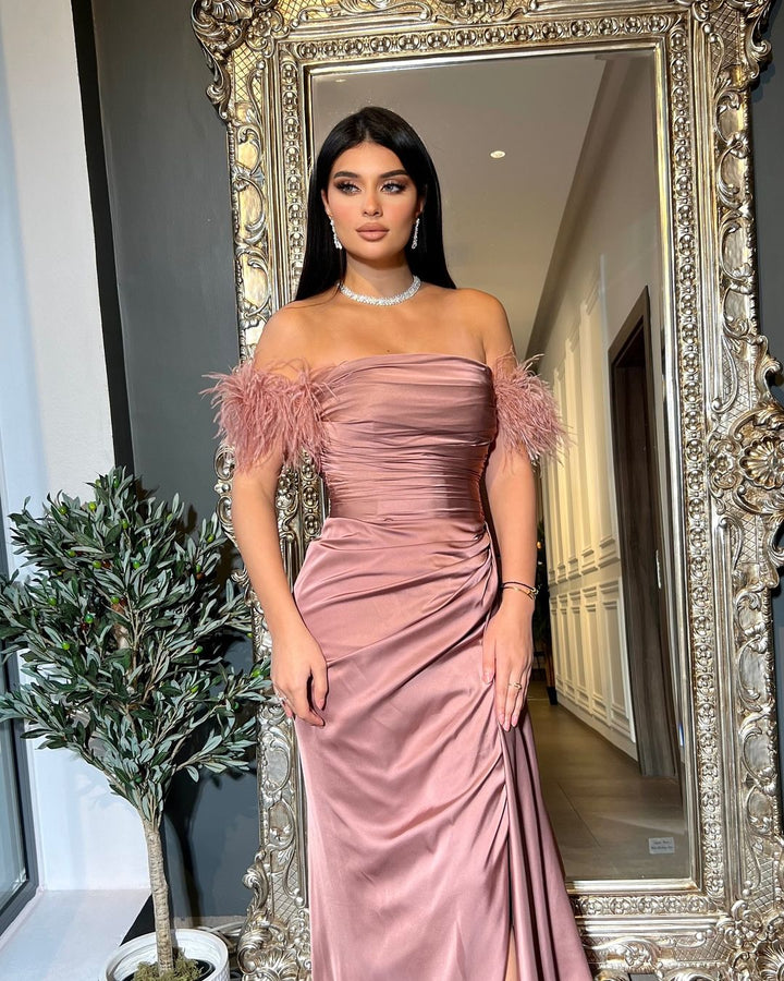 Africa Orange Mermaid Evening Dresses Sweet Heart Corset Silk Feather Women Wedding Guest Party Gowns Maid of Honor Dress