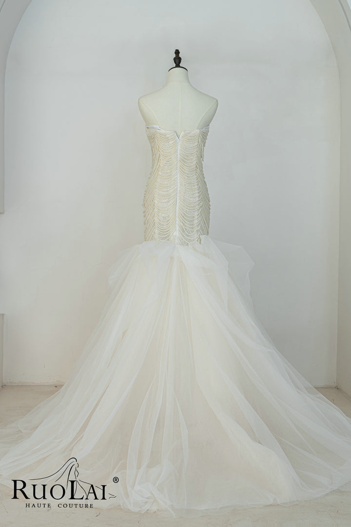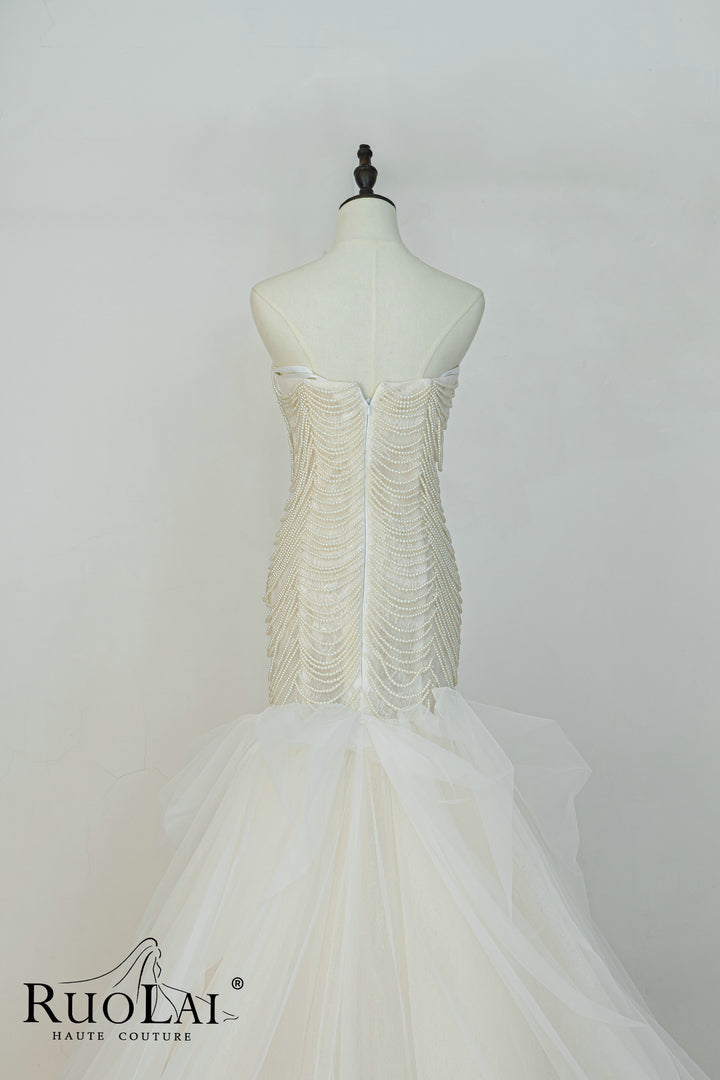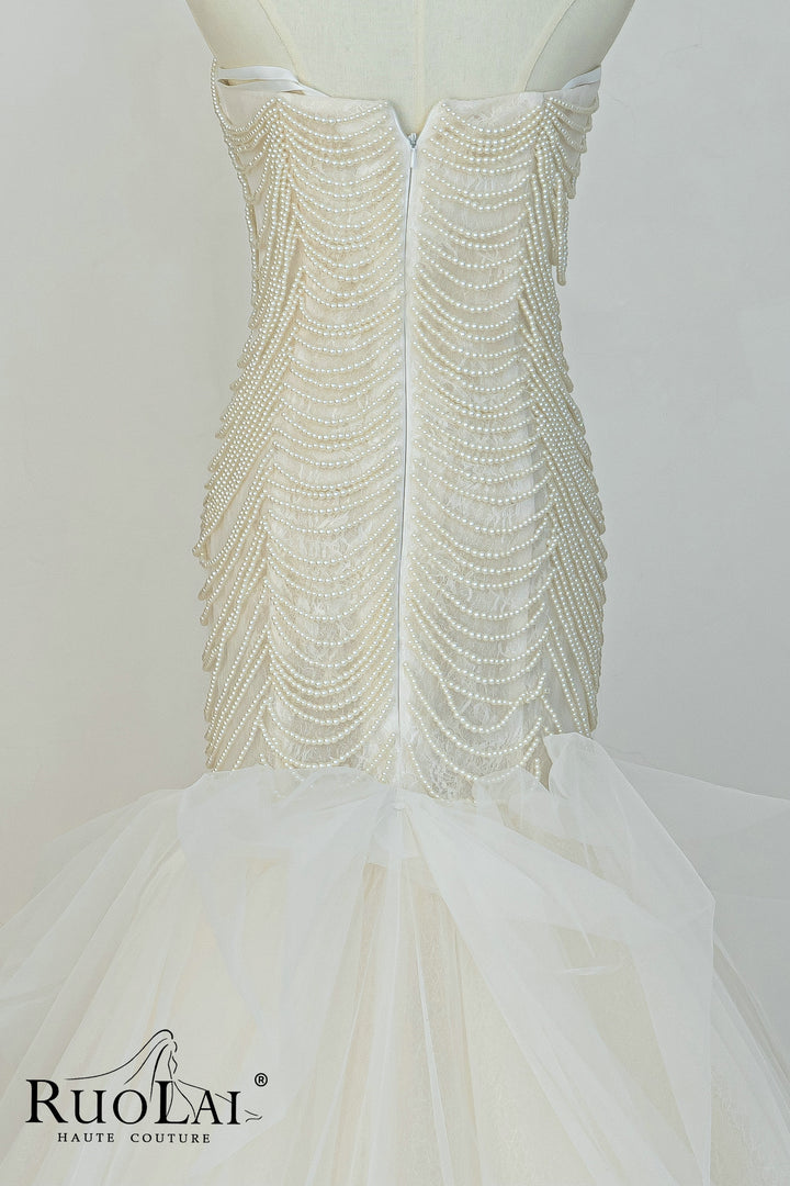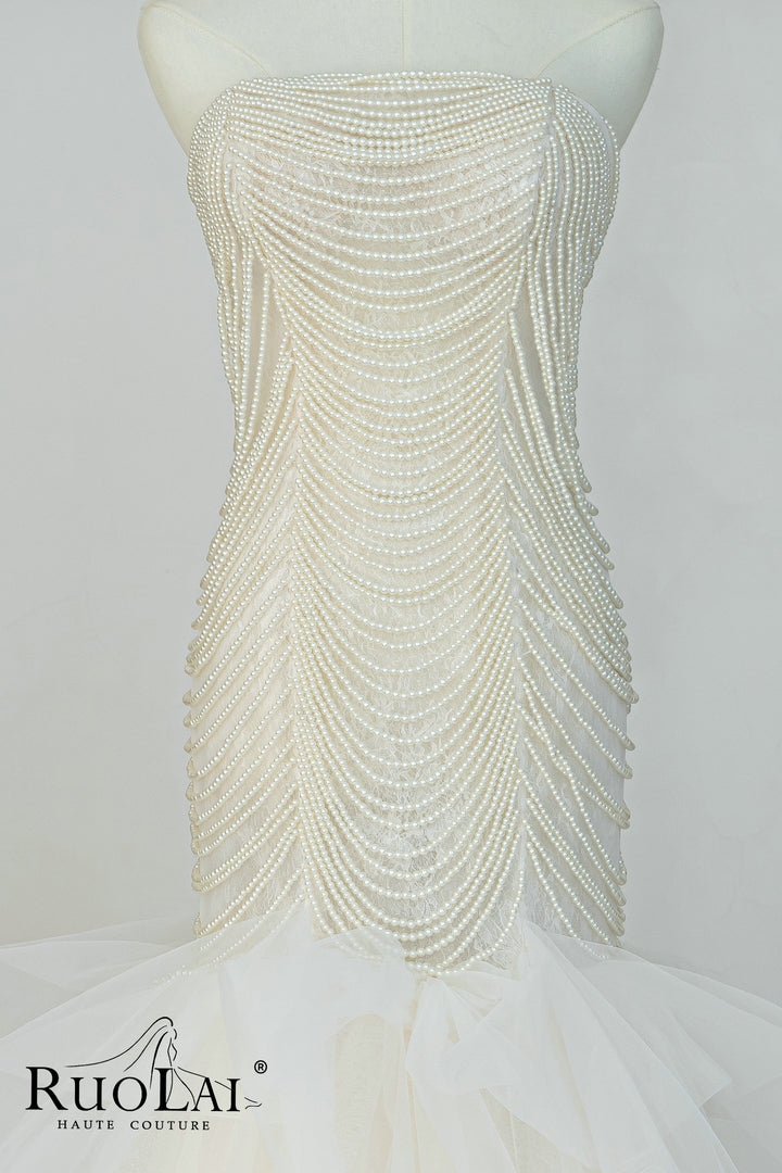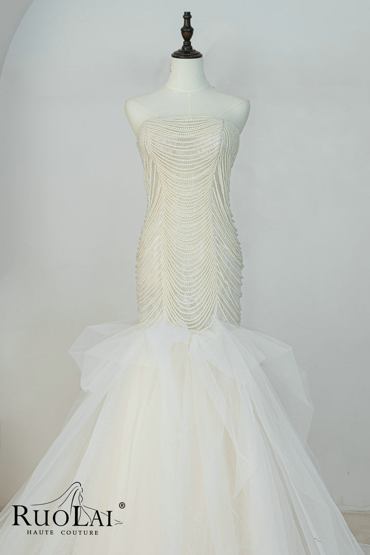 Luxury Beaded Pearls Mermaid Design Wedding Dresses for Women