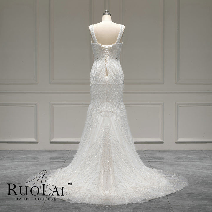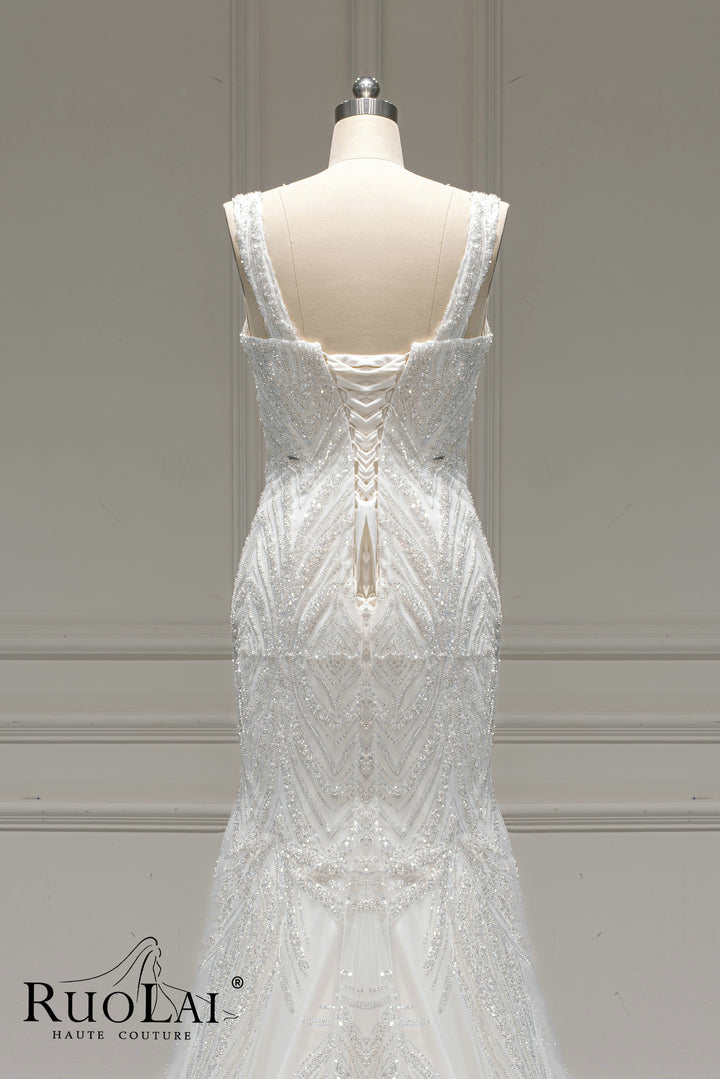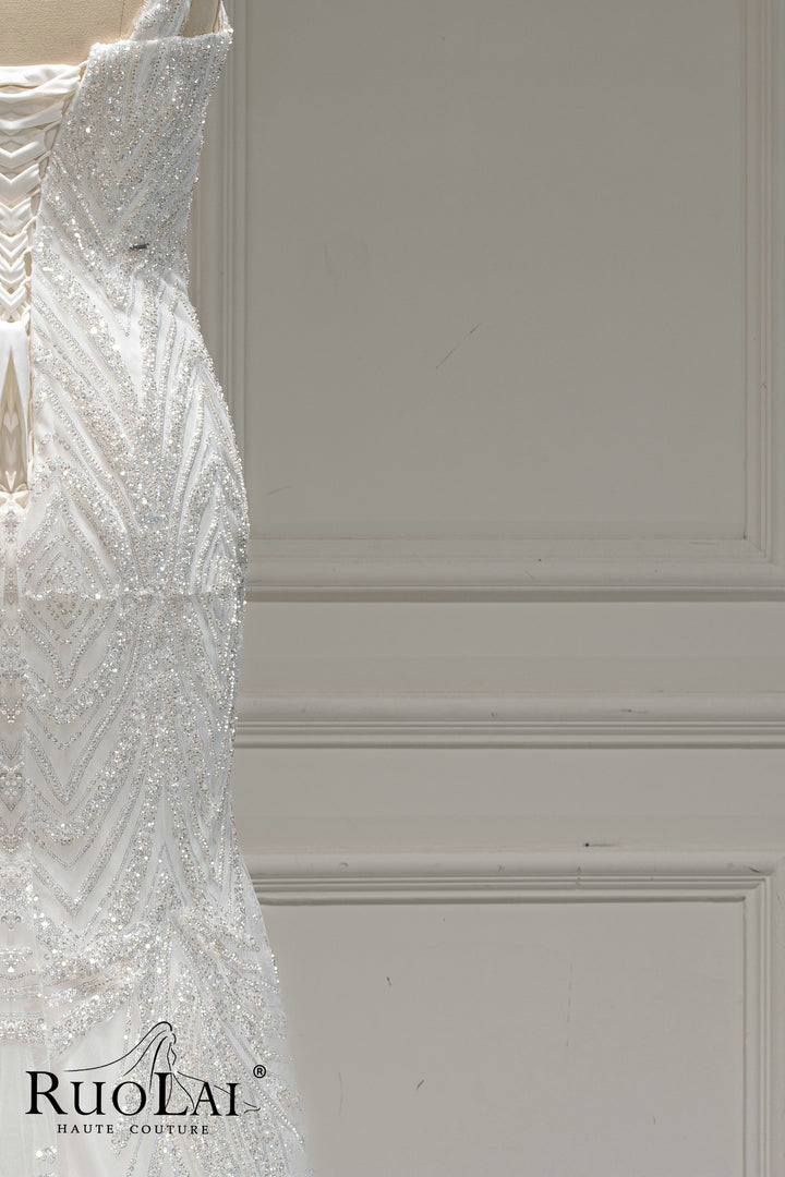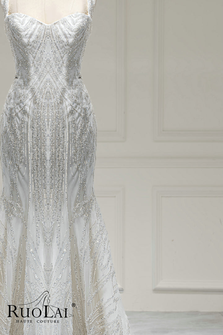 Luxury Beaded Sequins with Detachable Train Mermaid Wedding Dress