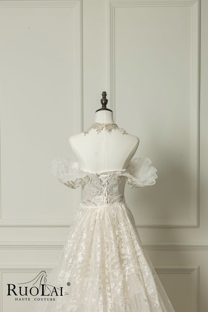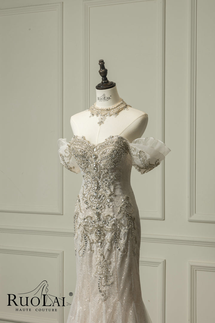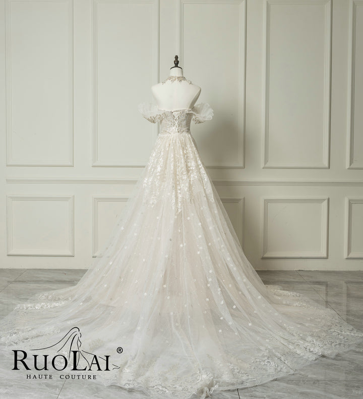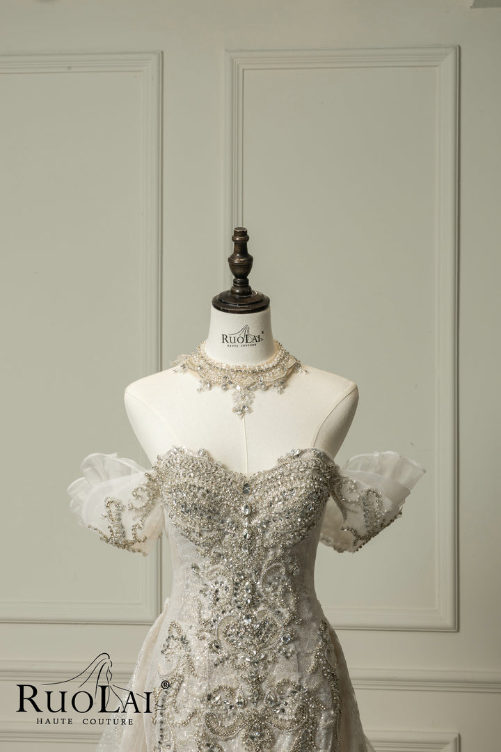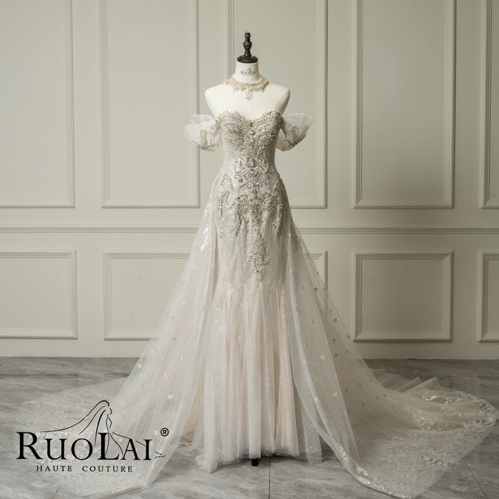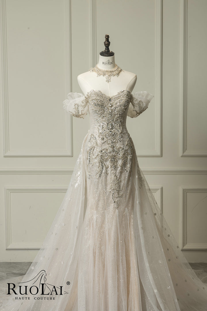 Luxury Beaded Sweetheart Neck Wedding Dress with Detachable Train
