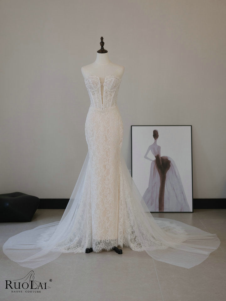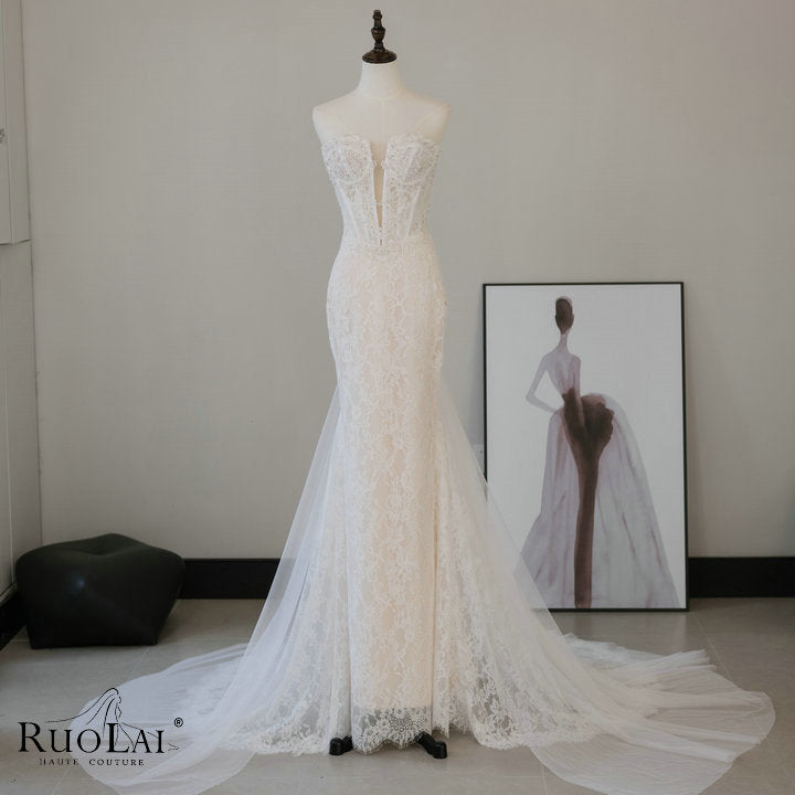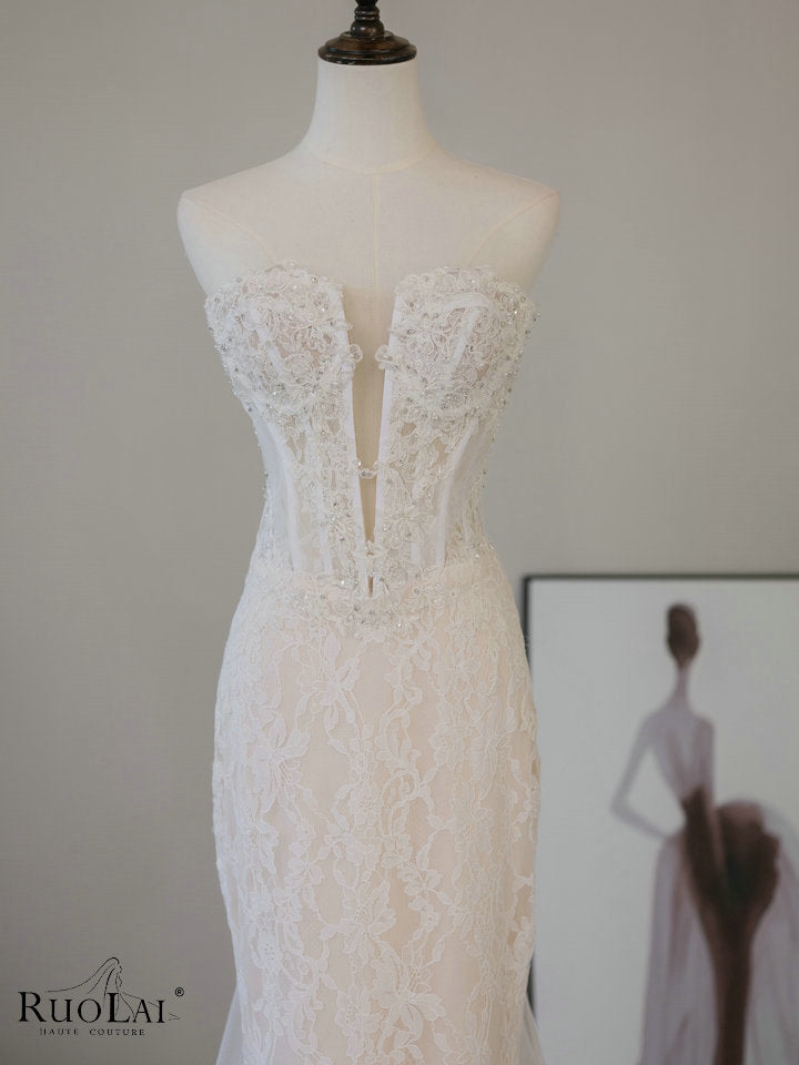 Luxury Brillante Deep V Neck Mermaid Wedding Dress Bridal Gown Beaded Shawl Party Gown for Bride Wedding