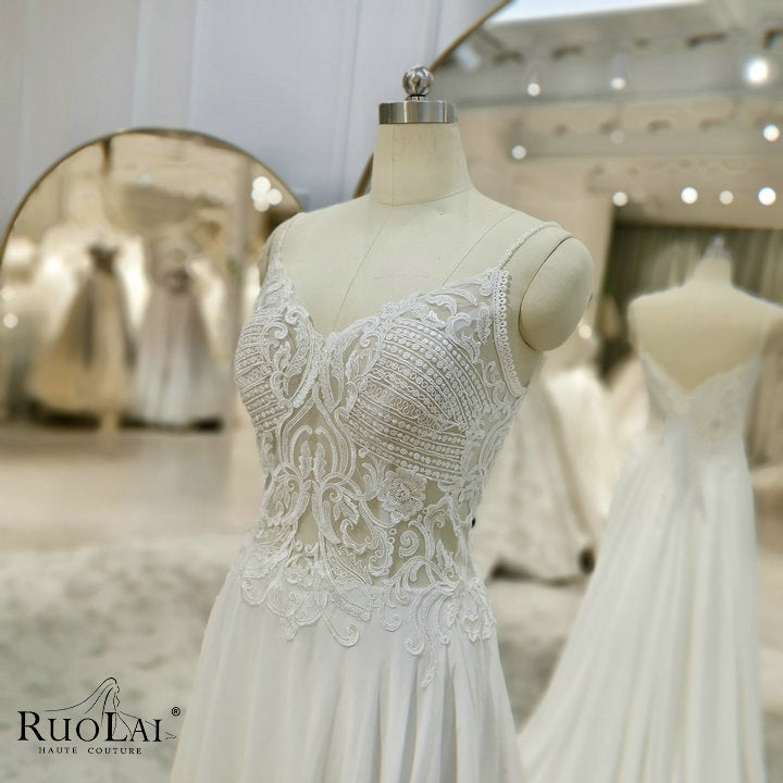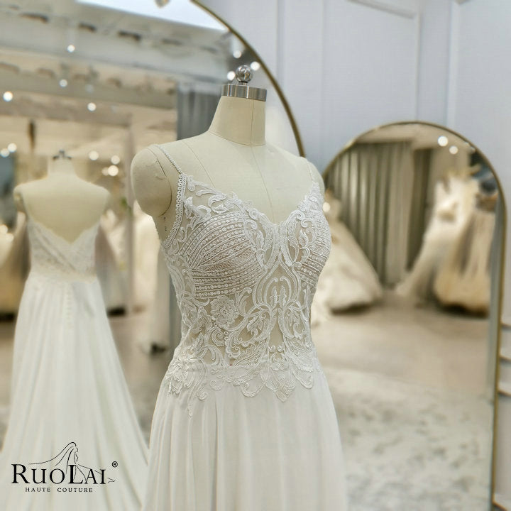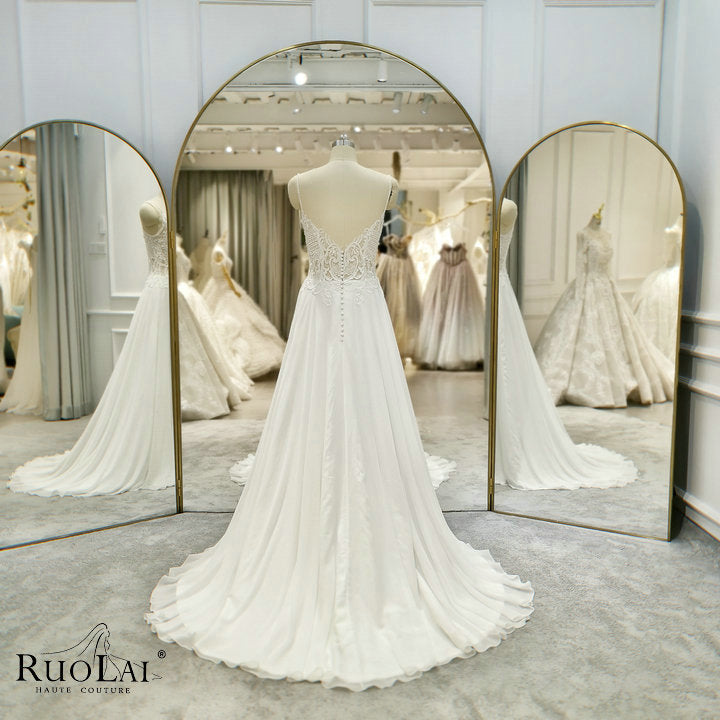 QW01091 Luxury Civil Chiffon Spagheti Strap Wedding Gowns