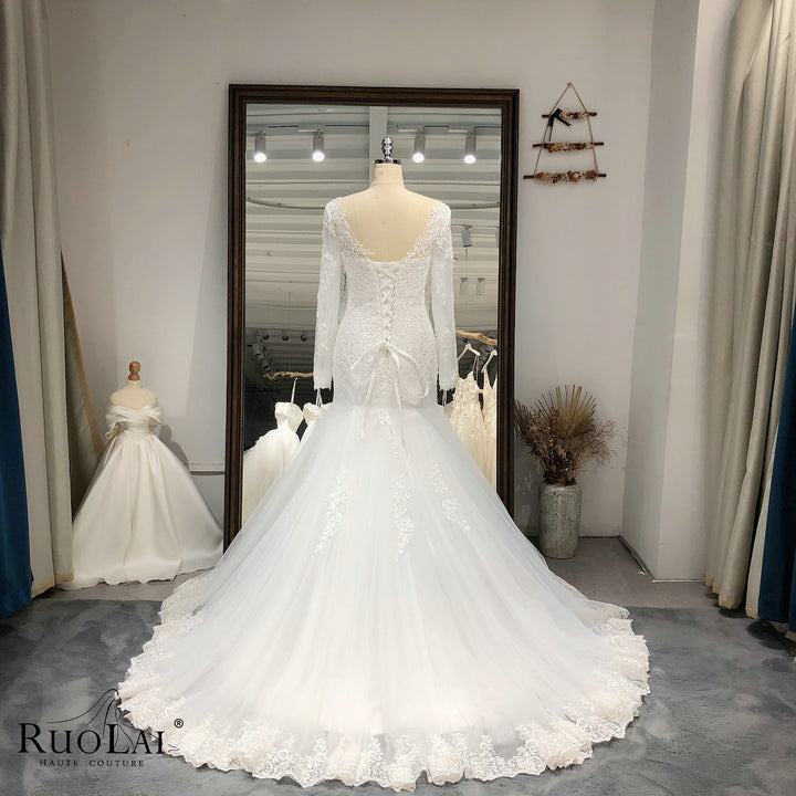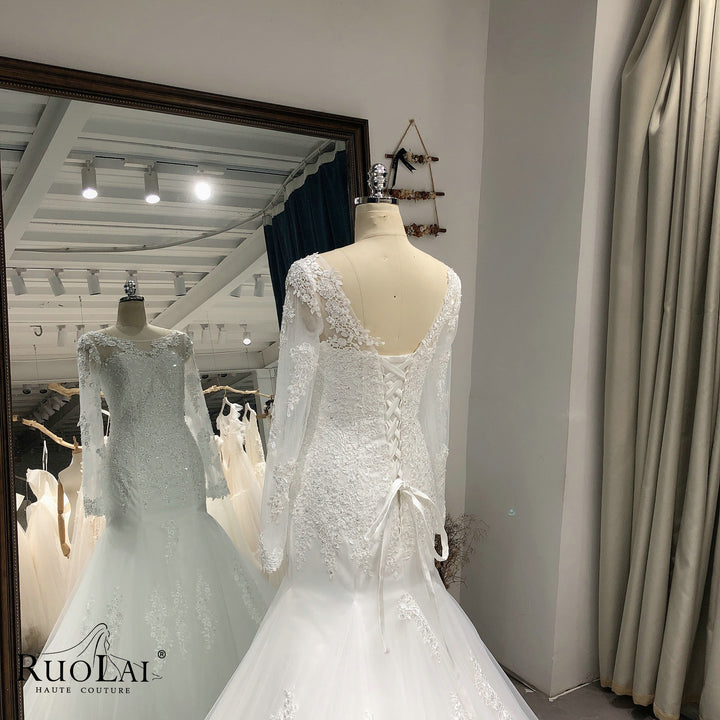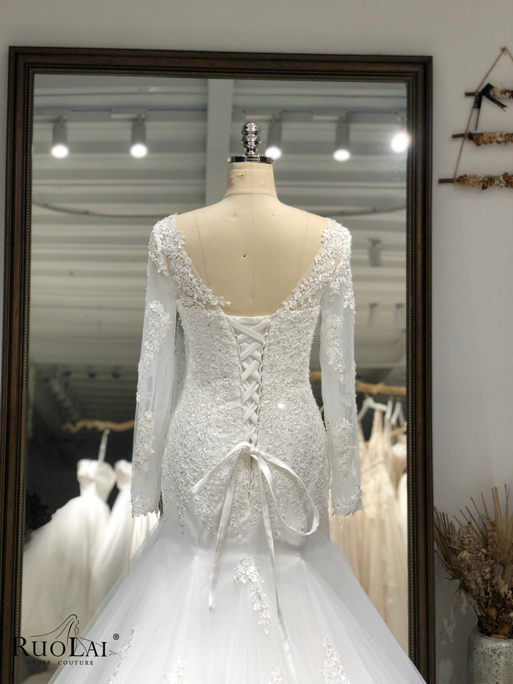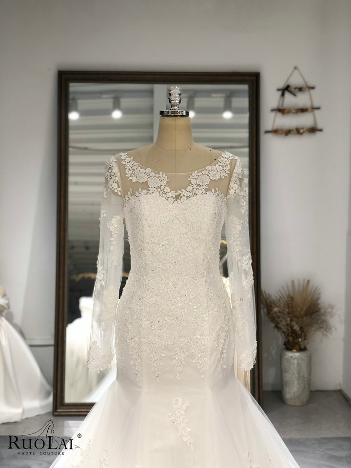 QW01072 Luxury Illusion Long Sleeves Lace Mermaid Wedding Dresses