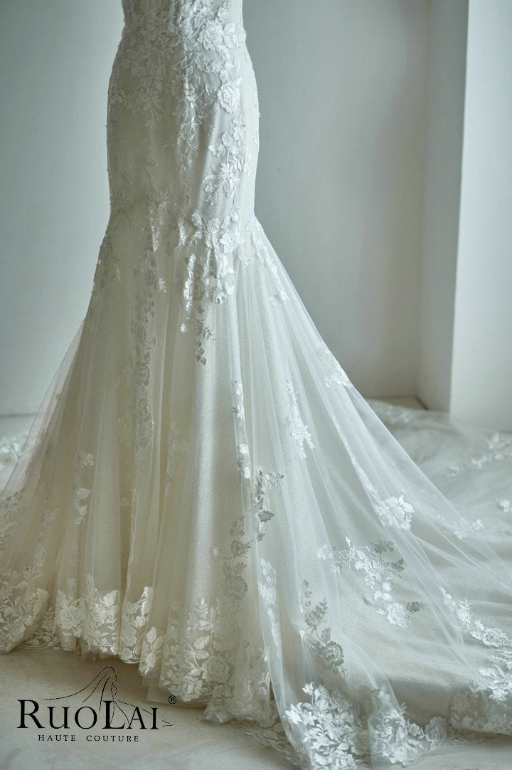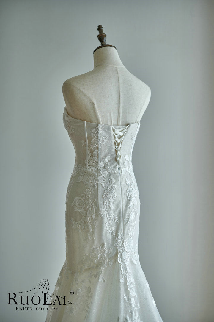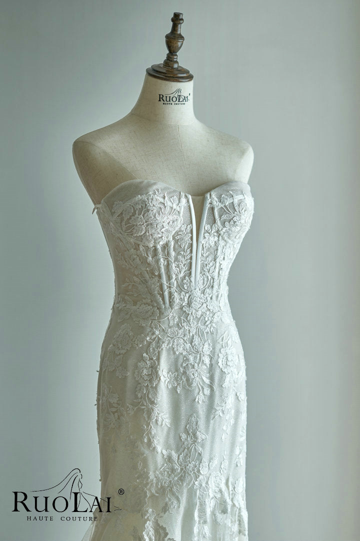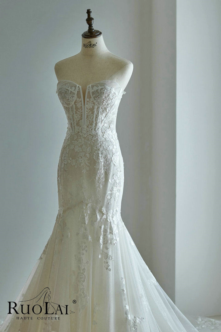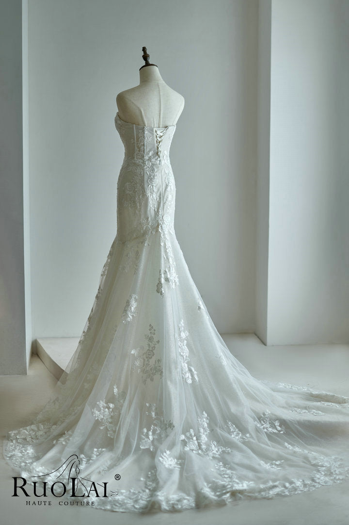 Luxury Lace Appliqued Sweetheart Neckline Mermaid Bridal Gowns