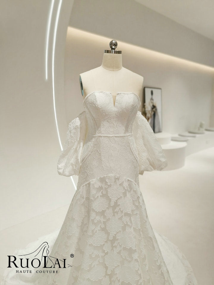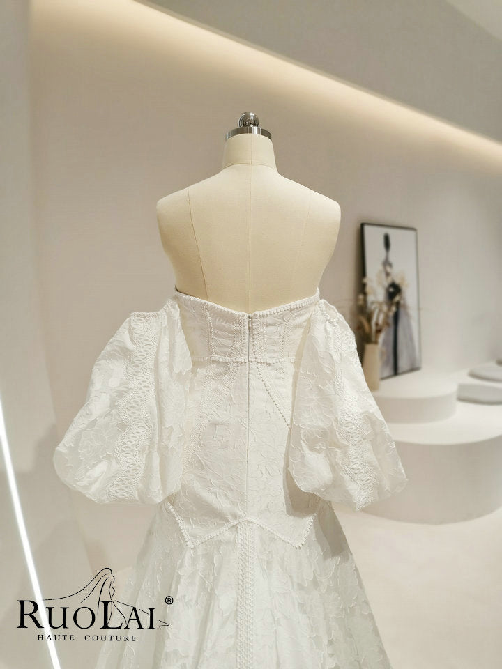 Luxury Lace Detachable Sleeve Sweetheart Neck Wedding Dresses